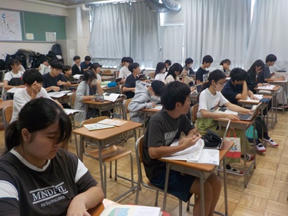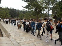東京駅に午前8時に全員集合して、出発式を終えた3年生は、新幹線に乗り込み、新大阪に向けて元気に出発しました。今年度は大阪で55年ぶりに開催される万博を見学するなど、例年とは異なる行程でとても楽しみです。 ![]() 新幹線車内ではカードゲームやおしゃべりなど、楽しいひとときを送っていました。10時30分より、少し早い昼食をとり、新大阪に到着しました。 バスに乗り換え、12時30分に大阪万博の会場に到着しました。会期末とあって、多くの来場者の皆さんでひしめき合っていました。会場ではクラス写真を撮ったあと、学年全員で大阪ヘルスケアパビリオンに入館して、健康に関する体験や展示を見学するなどしました。その後、16時30分まで行動班別の自由行動を行いました。 あまりの人の多さに驚きましたが、それぞれの班で考えながらパビリオン見学やおみやげ購入などをしていました。中には大阪ヘルスケアパビリオン以外に4箇所のパビリオンに入ったというグループもありました。あっという間に集合時刻の16時30分になりました。 ![]() ![]() 17時にバスに乗車し、途中渋滞のため、予定より30分ほど遅れて18時40分に奈良の宿舎に到着しました。夕食は全員、大広間でいただきました。その後、自由時間、係会、部屋会と続き、22時に就寝しました。 ![]() 10月3日(金) 2日目 奈良から京都への班別行動 修学旅行2日目、天候は曇り、気温は25度です。7時過ぎに朝食をいただき、8時30分に東大寺に向けて宿舎を出発しました。 東大寺では早速、鹿の出迎えを受けました。朝、早い時間なので、観光客も少なく、参道は雰囲気がとてもよかったです。クラス写真を撮ったあと、全員が大仏殿に入り、大仏様を拝みました。 ![]() ここから、班別行動に移ります。奈良から京都に移動するグループや奈良の春日大社、興福寺をまわるグループ、宇治の平等院や伏見稲荷に立ち寄るグループな 奈良から開始した班別行動は最後のグループが17時半に無事京都の宿舎に到着しました。京都の宿舎は、知恩院や八坂神社に近い繁華街である祇園にあり、外国人観光客の姿がとても多く見られました。 ![]() 到着したグループから入浴を開始してみんなさっぱりしてからの夕食です。今日は部屋食です。部屋のメンバーで談笑しながらの楽しい食事になりました。 その後は、修学旅行最後の夜のイベントである学年レクリエーションを行いました。学年の絆がより強くなるとよいですね。 10月4日(土) 3日目 午前はタクシーによる班別行動、午後は帰京 修学旅行最終日です。今日の京都はあいにくの雨模様、気温も最高気温も23度で、少し肌寒さを感じました。 今日は8時30分から13時30分まで、タクシーによる班別行動です。金閣寺や龍安寺、嵐山方面に向かうグループが多いです。タクシーの乗務員さんによるガイドがあるため、興味深い知識を得ることができます。8時30分に全班出発しました。 ![]() あっという間に集合時刻の13時30分になりました。天候は朝と変わらず、雨模様です。各グループは計画した見学を終えて、京都駅に集合しました。 解散式では校長、実行委員長のあいさつを聞き、お世話になった皆さんへの感謝の言葉をお伝えしました。そして解散式を終えて、新幹線に乗り込み、東京への帰途につきました。これまでの思い出を話題にして車中を過ごし、東京には17時前に、西荻窪には18時過ぎに到着し、3日間の修学旅行を無事に終了しました。 ![]() 今年度の修学旅行では、二度とない大阪万博を見学できたことや、奈良、京都の寺社仏閣などの文化財や文化遺産を自分の目で見たり感じたりするなど貴重な経験がたくさんありました。これからの生き方や学びにも大きく影響したのではないかと思います。また、昨夜の学年レクリエーションも大いに盛り上がり、学年の団結が一層深まりました。様々な成果の合った修学旅行になりました。お疲れさまでした。 R7年9月27日 学校公開・道徳授業地区公開講座・学校説明会 土曜授業日に学校公開を行いました。本校の保護者様だけではなく、小学生とその保護者様にも御来校いただき、たくさんの皆様に各クラスの授業の様子を御覧いただきました。 R7年9月25日 第2回定期考査(1日目) 今年度2回目の定期考査を本日から2日間行います。今回は国語、社会、数学、理科、英語の5教科を対象とします。生徒一人ひとりが自分に合った計画を立てて、準備をしてきました。学習の成果が発揮されることを期待しています。 ![]() R7年9月17日 アフター・スクール・スタディ開始(定期考査8日前) 学校支援本部(共育支援本部)主催の定期考査前自主学習教室であるアフター・スクール・スタディが始まりました。毎回、多くの生徒が参加しています。 1年生にとっては2回目の定期考査となりますが、1回目の反省を踏まえ、今回も準備に力を入れています。努力の成果が発揮されることを期待しています。 ![]() 各運動部の新人大会が開催されます。その大会に向けて1、2年生が練習に励