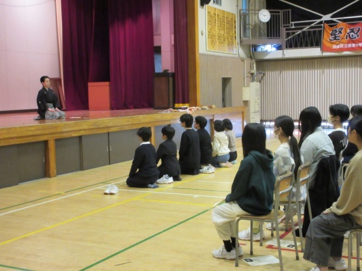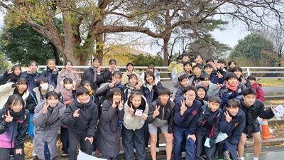 気温は5℃前後の寒さで、しかも時折、大粒の雨が降りしきる悪天候の中、今回で26回目となる杉並区中学校対抗駅伝大会が開催されました。本校は11月に入ってからすぐに本大会に向けた練習を開始し、チーム全員が1つになって、全力・笑顔でゴールすることを目標に練習に励んできました。その結果、男子は見事に優勝、女子も第5位を勝ち取り、栄誉ある総合優勝に輝きました。 とても悪いコンディションの中、女子第1区と男子第3区で区間賞を受賞するなど、一人ひとりの選手の自己記録を上回る快走が良い結果に結びつきました。最後まで全力で走る選手たちの姿は本当に素晴らしかったです。 また、大会運営では本校のボランティア部の部員4名が大会アナウンスを務めるなど、裏方でも活躍しました。たくさんの生徒・保護者の皆様の声援もあり、とても熱い大会となりました。 ![]() ![]() ![]() R7年12月12日 第3学年 能楽ワークショップ 例年、3年生を対象に日本の伝統芸能の1つである能楽のワークショップを実施しています。今年度も、能楽の専門家をお招きして、能楽についての知識の習得と、実際に能楽の体験を行いました。 ワークショップの初めは、能楽の歴史や歌舞伎など他の伝統芸能との違いについて学びました。その後はいよいよ体験です。初めに装束の着付け体験を3人の生徒をモデルにして行いました。時折、大きな笑いも起こるなど、和やかな雰囲気で行われました。次に謡(うたい)と舞(まい)のグループに分かれ、講師の先生から指導を受けました。謡はすべての歌詞を覚えて、紙に書かれた歌詞を見ないで歌えるように何度も練習しました。舞は代表生徒6名が、別室で1時間近く、特訓を受けました。 そして、いよいよクライマックス。1つに合わせる時間です。練習の成果が存分に発揮され、とてもすばらしい舞台を作り上げることができました。 2時間近くのワークショップでしたが、みんな集中して体験に取り組み、日本文化の奥深さを感じる貴重な時間になりました。 ![]() ![]() R7年11月29日 午前 土曜授業 第2学年 SDGsに関する学習