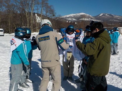 8時に宿舎を出発。奥ダボスゲレンデに向かい、9時から最後の講習が始まりました。奧ダボスゲレンデは菅平高原スキー場の最も北にあり、素晴らしい景色が望めます。今日は快晴のため、一段と素晴らしい雪景色でした。とても広いゲレンデのため、これまでの講習の成果が発揮されていました。