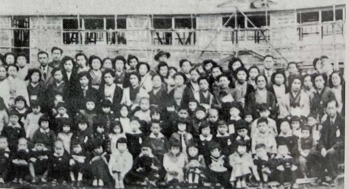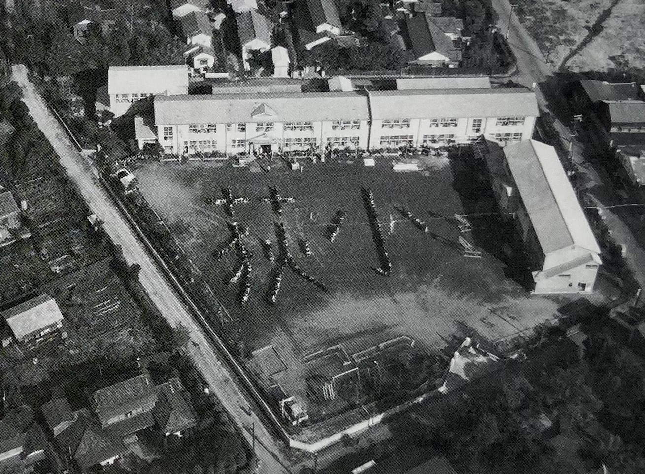 昭和25年(1950)11月に、木造校舎を建て始めました。敷地は6200平方メートルという広さで、学校としては、少しせまいという意見もありました。