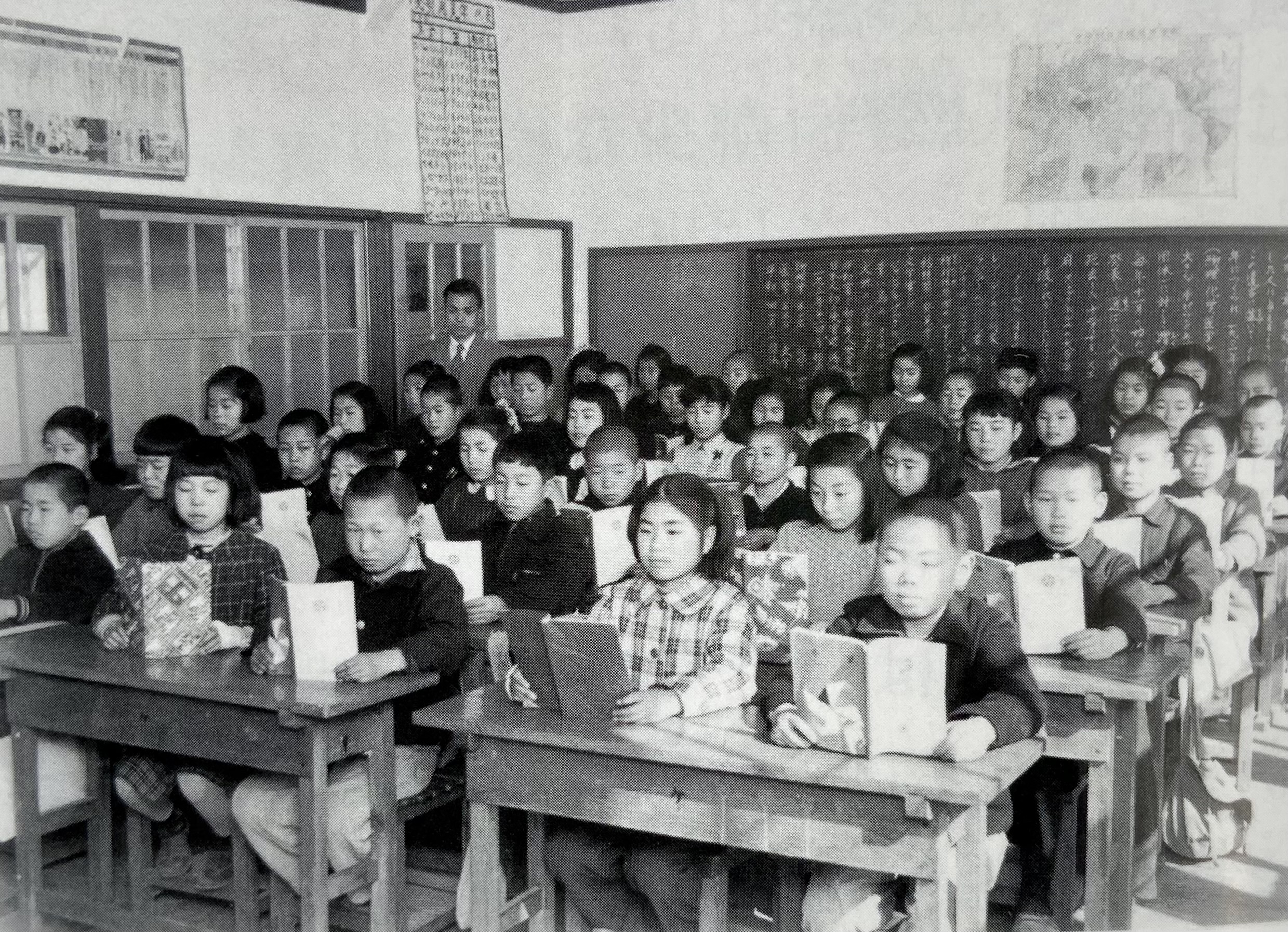 昭和25年(1950)、おとなりの学校、桃井第二小学校の児童数は1800人以上にふえました。ですから桃井第二小学校では、教室が足りなくなりました。そこで桃井第二小学校では、一つの教室を午前中に1回使うクラスと午後に1回使うクラスができました。このような授業の仕方を「2部授業」といいます。近くの高井戸第四小学校、桃井第三小学校も同じように、児童の数がとてもふえました。