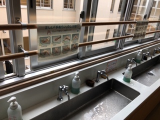 2020年06月09日 新学校生活様式 感染症予防対策をとりながら、新しい学校生活が始まっています。いくつか紹介します。 ・教室とオープンスペースの間仕切りを開け、机の間隔も広く取るようにしています。 ・換気のため、これまで開放していない排煙用窓を開けています。 ・手洗い用水道には、手の洗い方表示や液体石鹸を置いてあります。待機線表示もしました。・鼻をかんだ紙等のごみは、教室内のごみ箱を使わず、オープンスペースの足踏み開閉式のごみ箱を使います。・ミニトマトの鉢もソーシャルディスタンスを保っています。 前の記事へ 記事一覧 次の記事へ