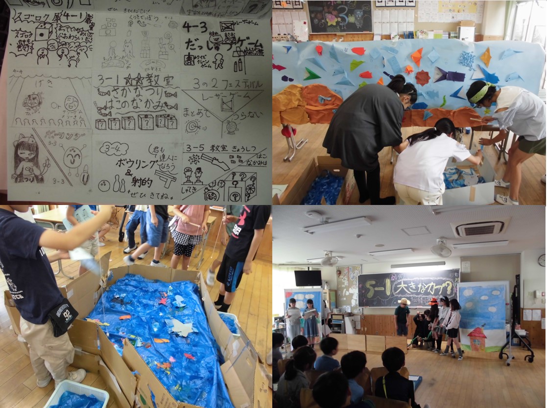 【全校】さくら草まつり 2025年7月4日(日)「桜草祭」が行われました。 朝、登校してきた1年生が普段とは違う校内の様子を見て「わくわくする。早く桜草祭始まってほしい。」と話していました。お祭りでは、3~6年生までの各クラスが射的屋さんや謎解きゲーム、劇などの出し物を決めてお店を開きました。数週間前から準備に取り組み、学級の仲間と協力し合って作り上げたお店は、どのクラスも大盛況でした。全校児童、楽しい1日を過ごせたようです。