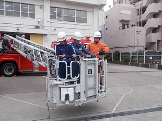 2年生全員が、多種の職場にて体験をしてきました。働くことの大変さを学びました。写真は、杉並消防署のはしご車体験です。 |