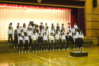 | 早朝より、校内で声出し後、徒歩でセシオン杉並へ移動。C組の合唱、合奏に始まり、各学年、 OB,OGコーラス、有志合唱、PTAコーラスとそれぞれ熱のこもった合唱が聞かれました。 |