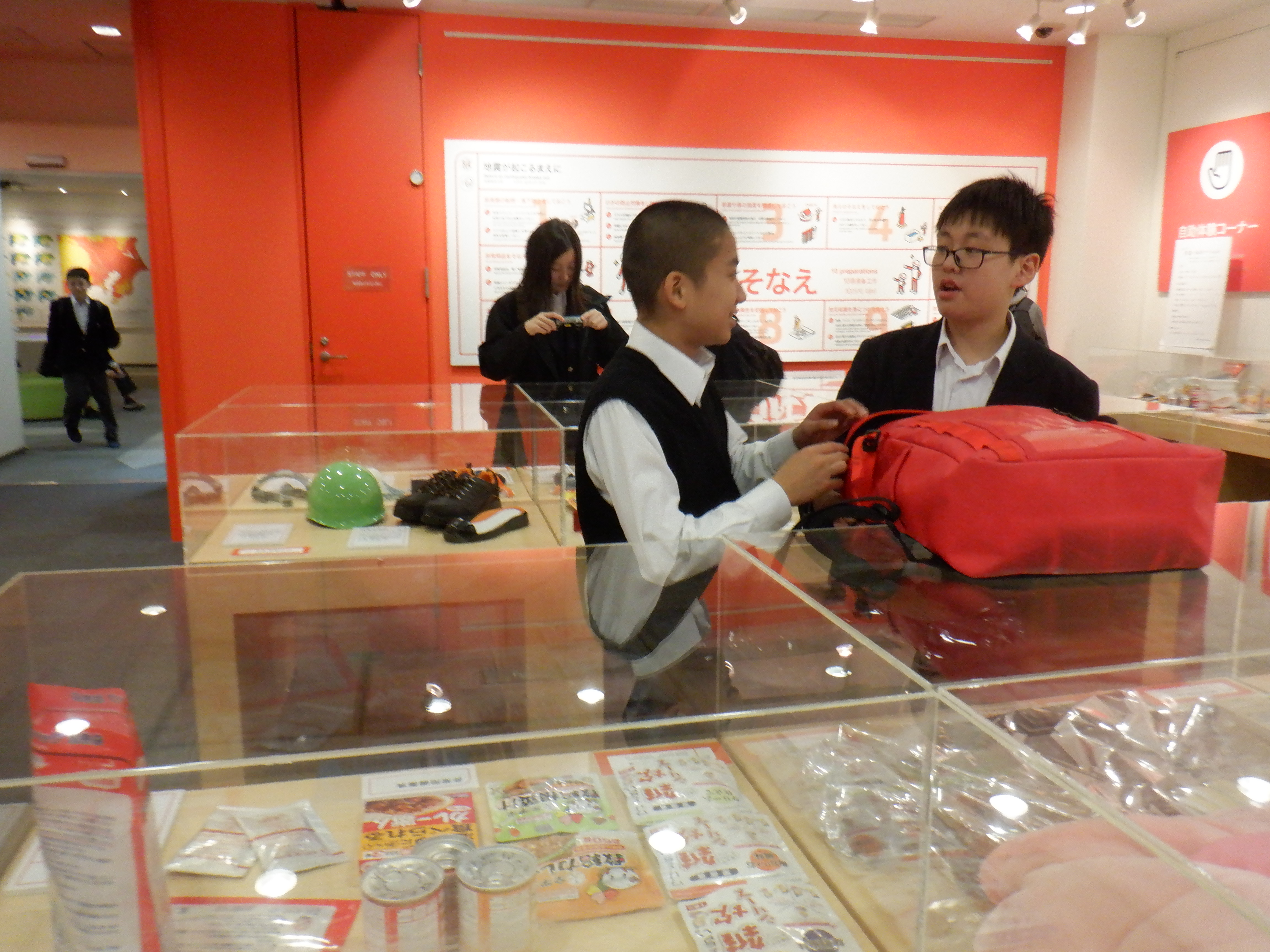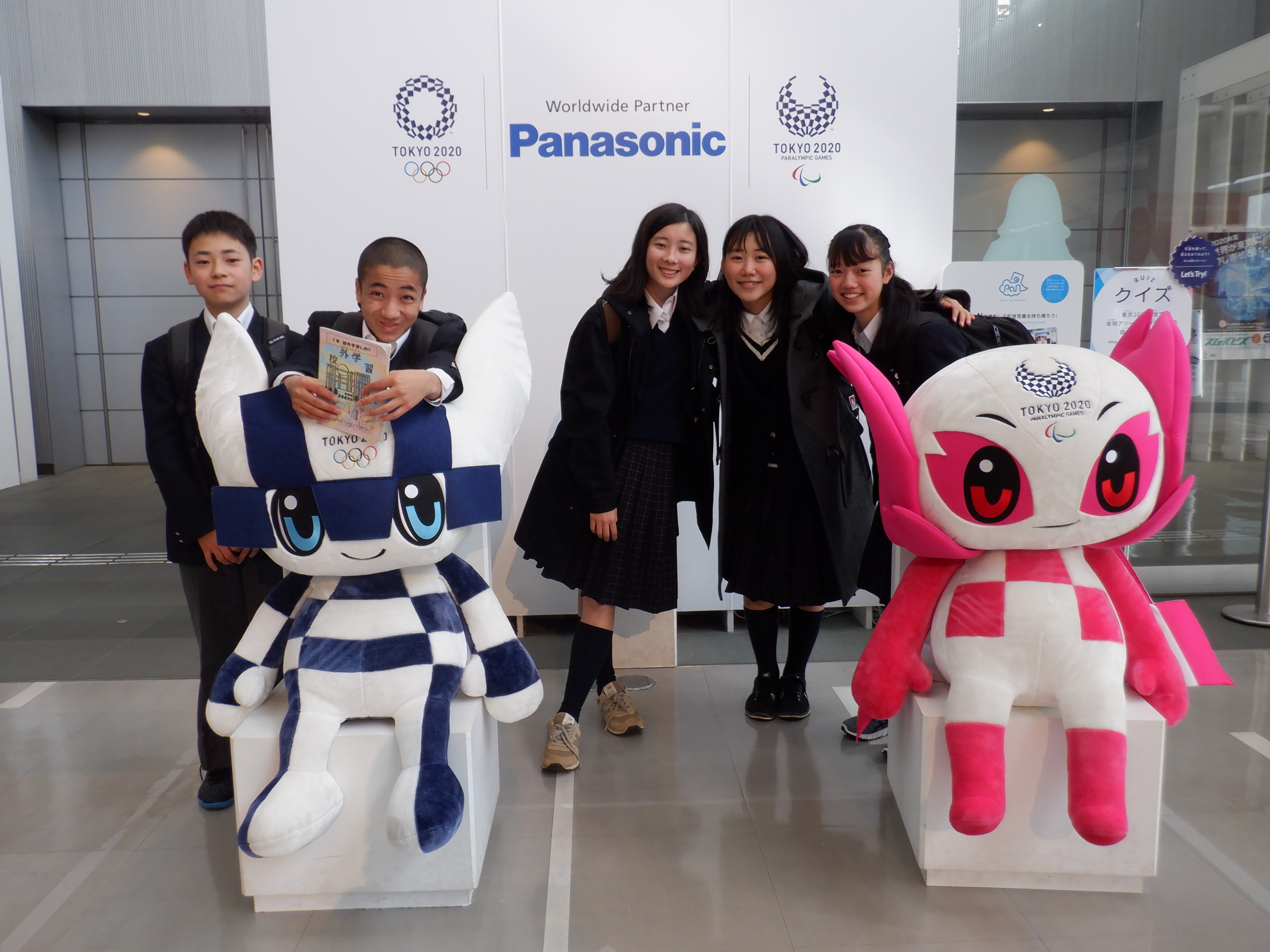 お天気にも恵まれ、有明、お台場方面へ校外学習に出 かけました。午前中は、TGGで英語学習。前半は、A組 は、町つくり、B組は、コマ撮りに取り組みました。後半 は、ホテルゾーンで体験学習です。お弁当を食べて少し の時間ですが班行動。そなエリアに集合して、防災学習 と盛りだくさんでした。 左下 パナソニック 右下 そなエリア |
