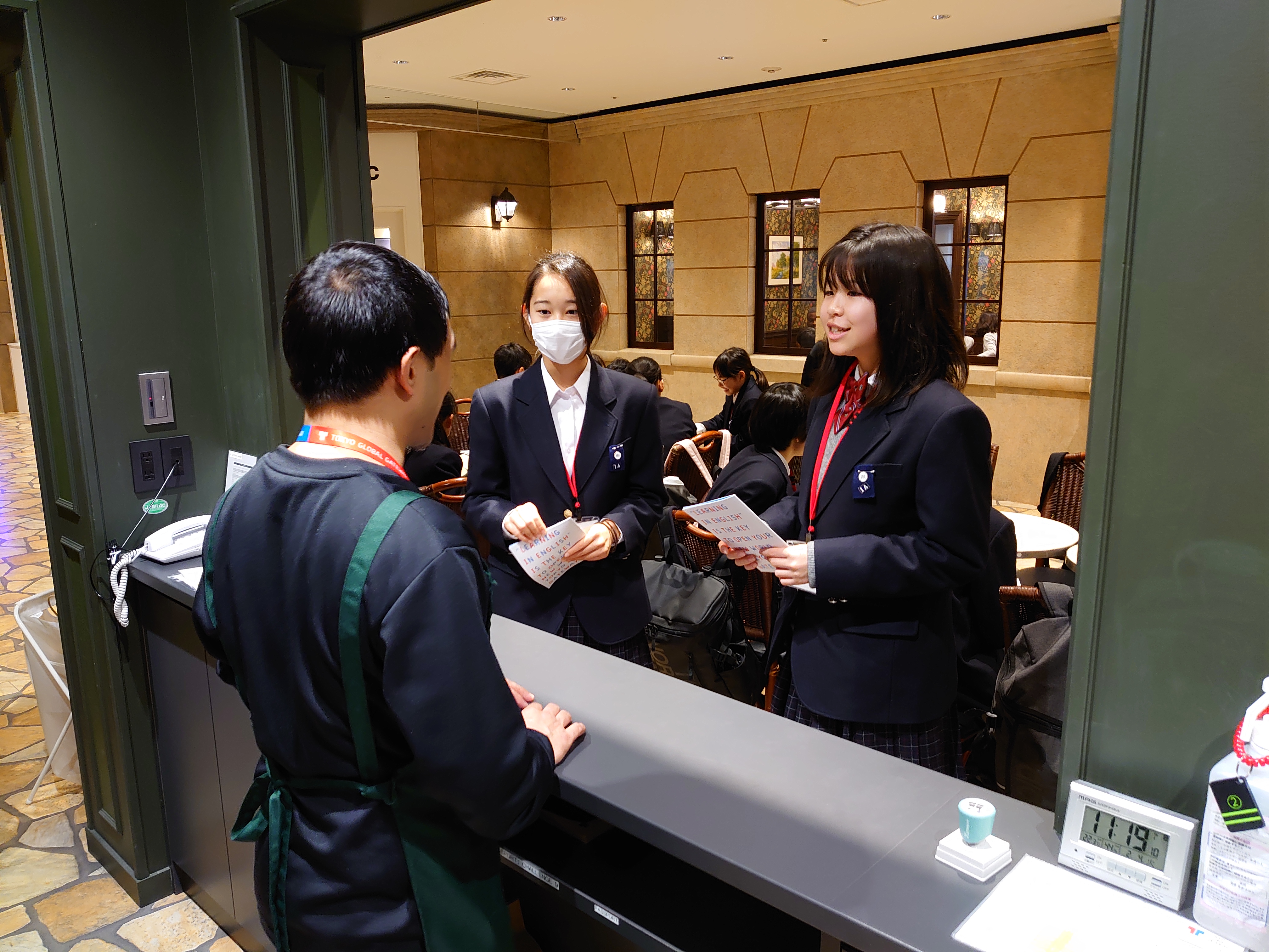 保護者の方やお世話になっている先生をC組に招待して、カレーをふるまいました。注文をとったり、レジで計算したりすることに苦戦していました。 |