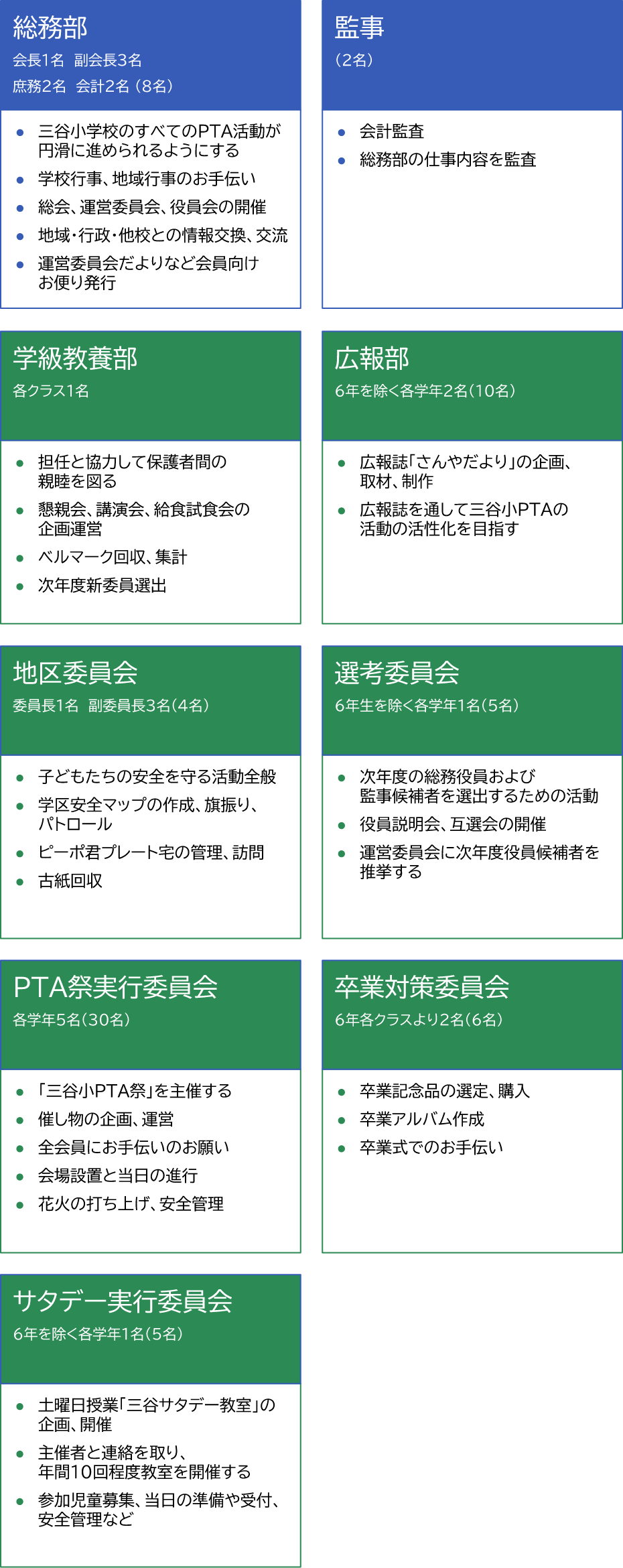 保護者一人ひとりの力を集めれば、子どもたちの毎日の学習活動や学校生活を幅広くサポートすることができます。「子供たちのために、自分のできることから」可能な時に無理をせずできるお手伝いで、三谷小学校の子どもたちをみんなで育てていきましょう。