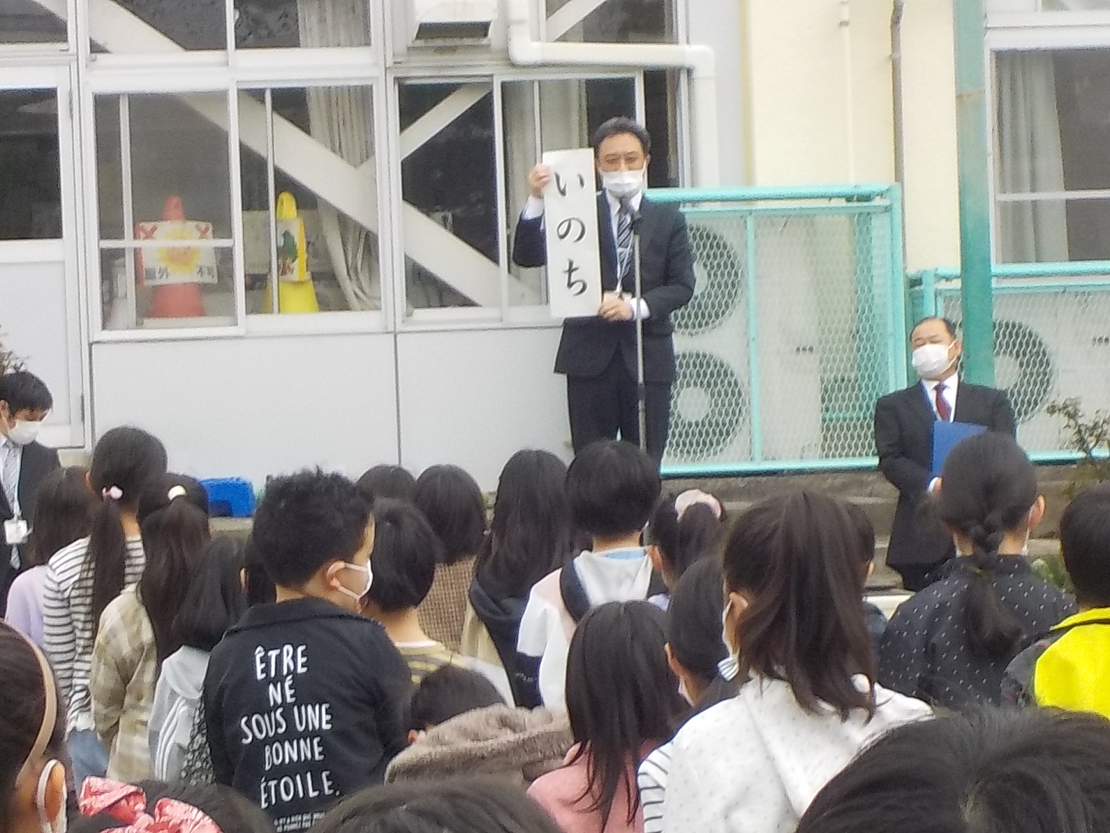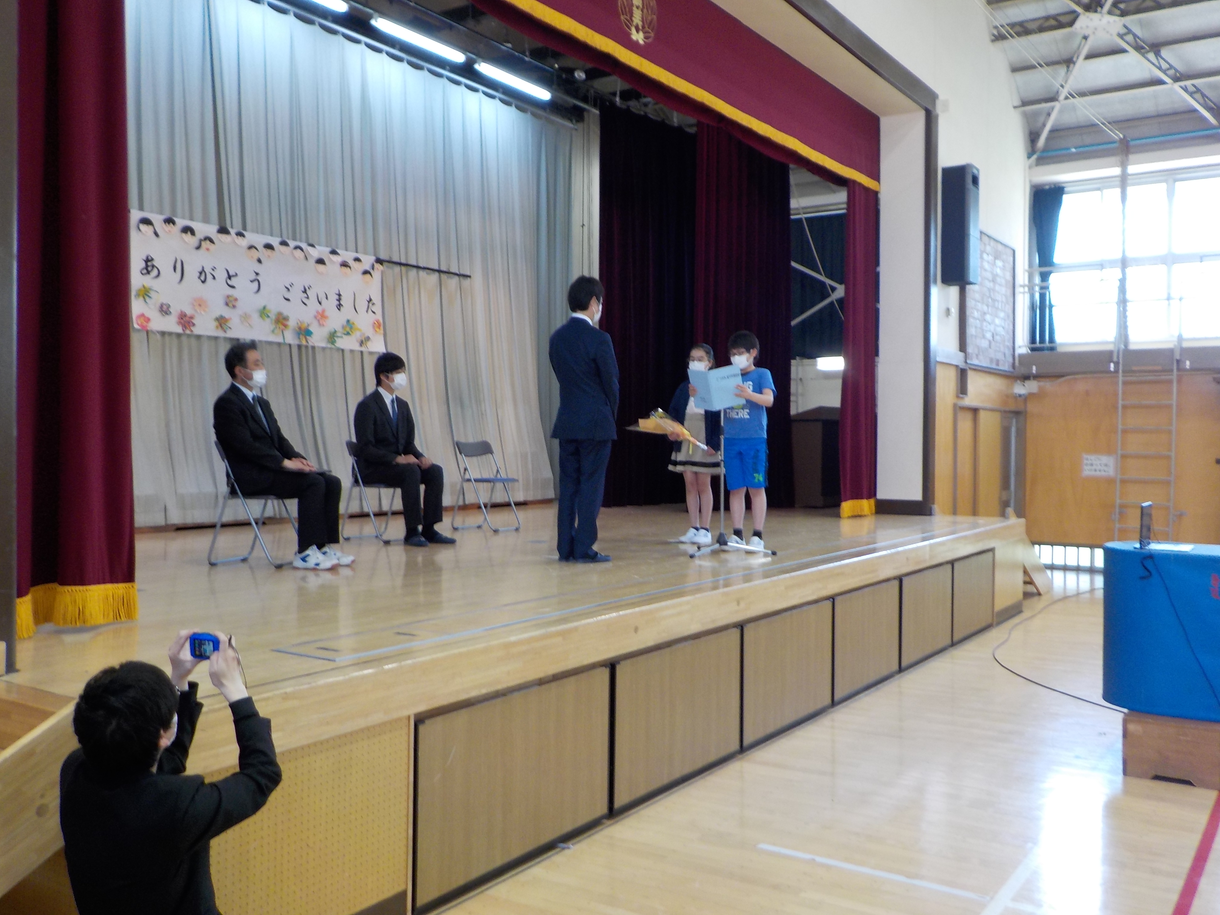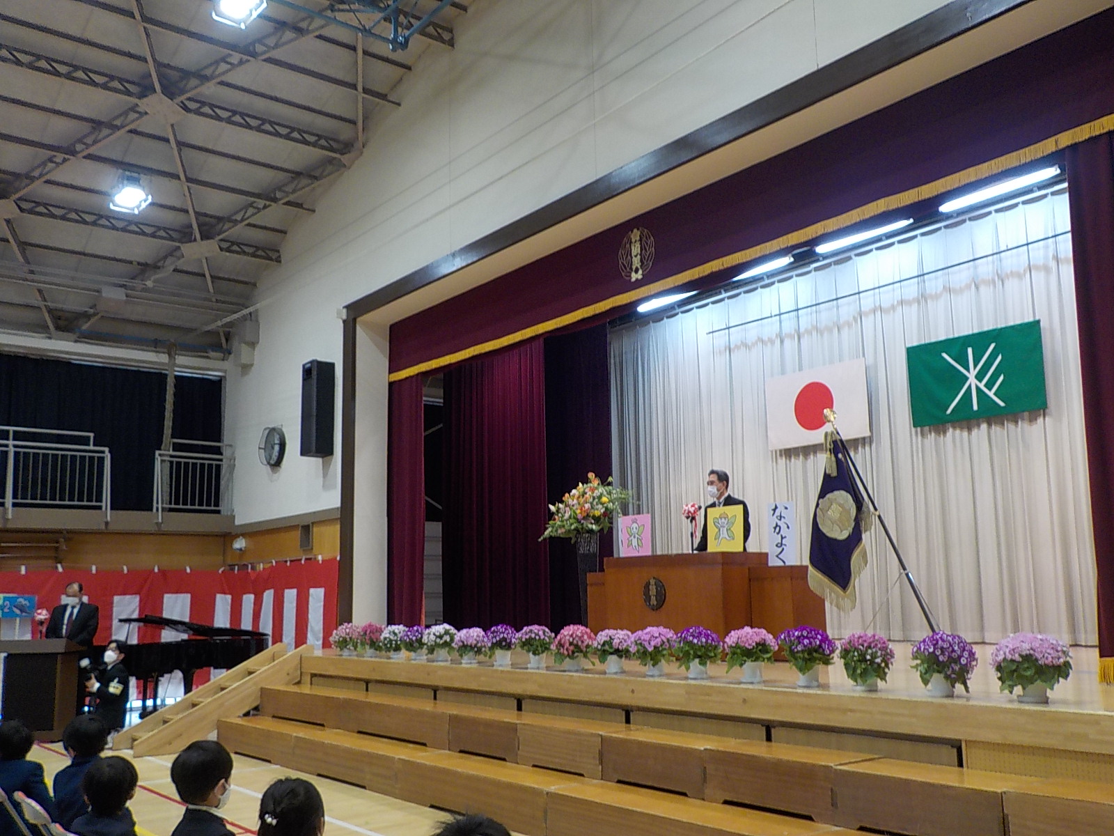 1年生が入学してから1週間がたち、1年生を迎える会が開かれました。感染防止のため、体育館には2年生と6年生だけが集まり、残りの学年はオンラインで参加しました。代表委員会の司会で会は進行し、各クラスの代表児童がお祝いの言葉を述べました。1年生の呼びかけも大変上手でした。もうすっかり済美っ子です。