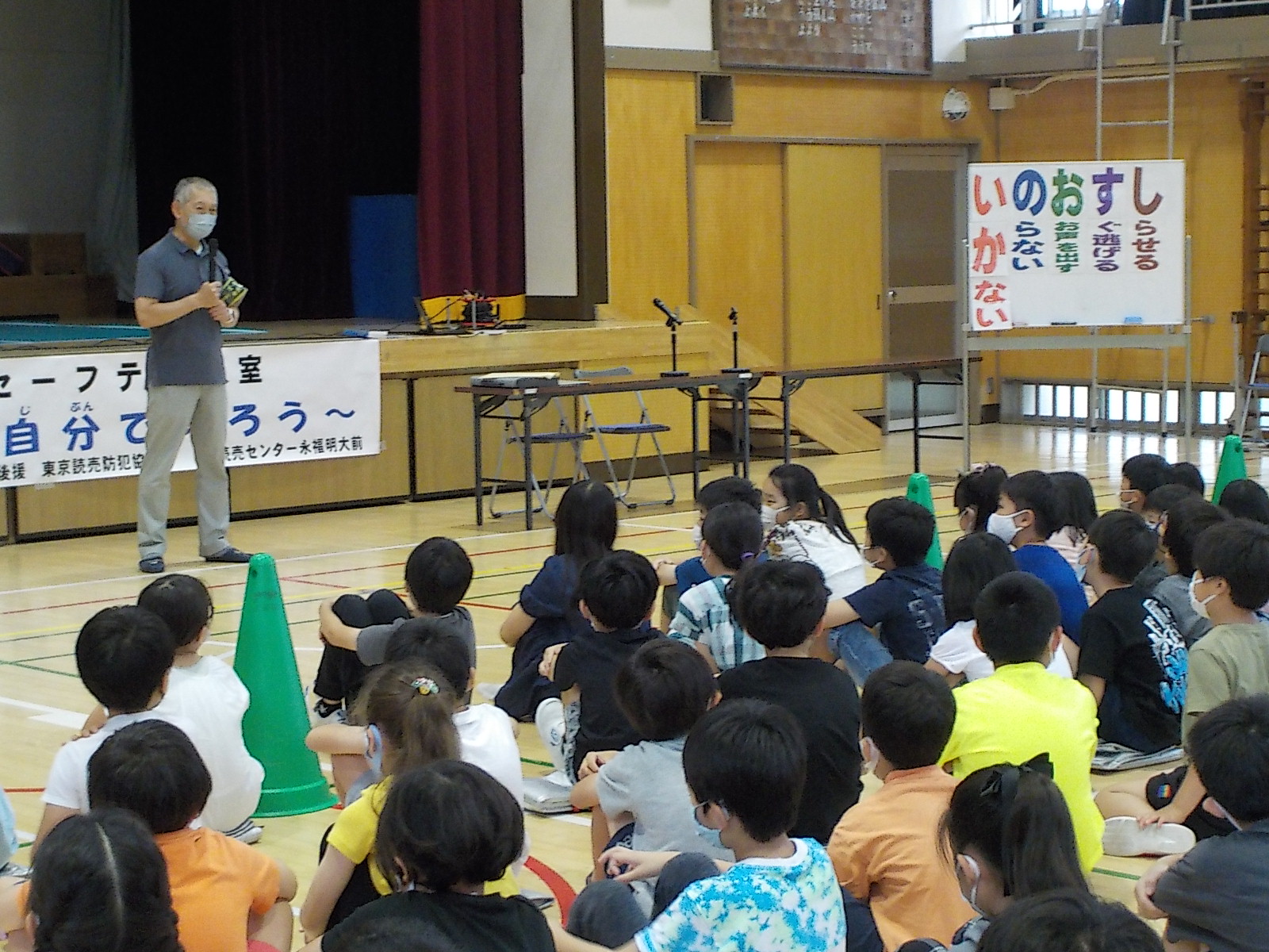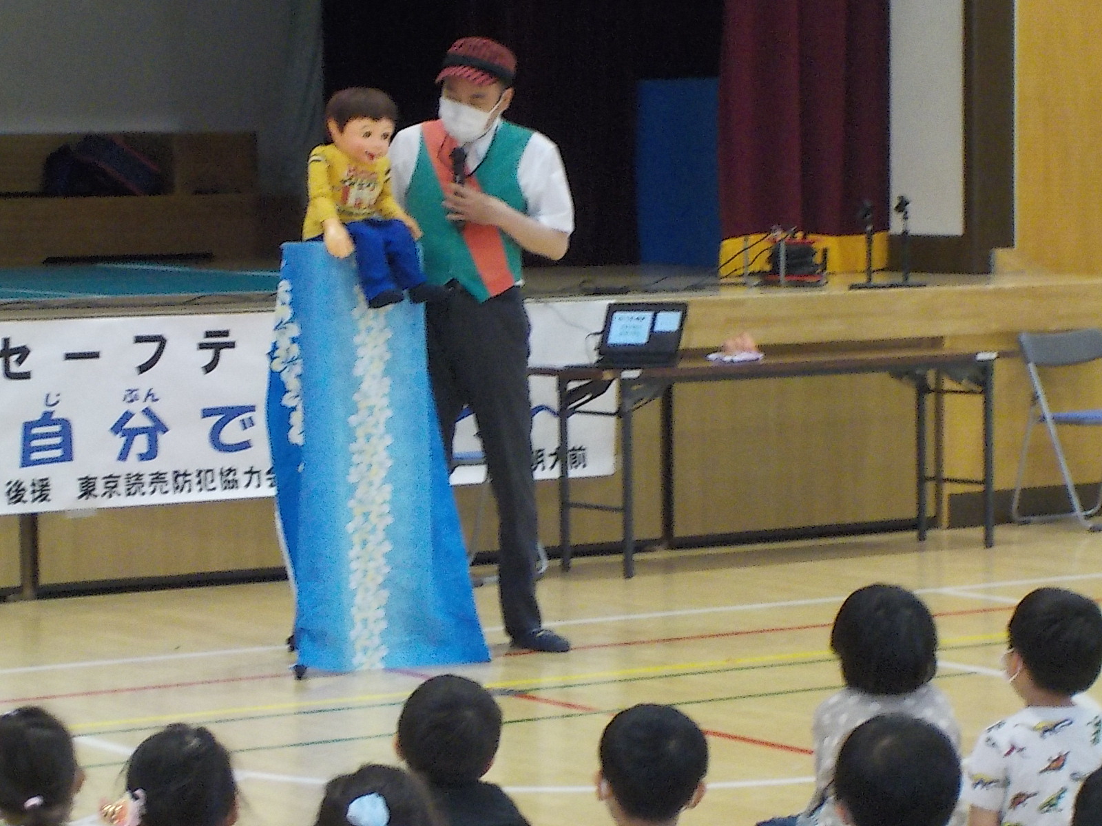 高井戸警察と読売新聞の協力を得て、セーフティ教室をひらきました。低学年は腹話術師の武田さんにより楽しく「いかのおすし」について学びました。また、中学年は万引きやいじめの違法性について、高学年はSNSの危険について学びました。、