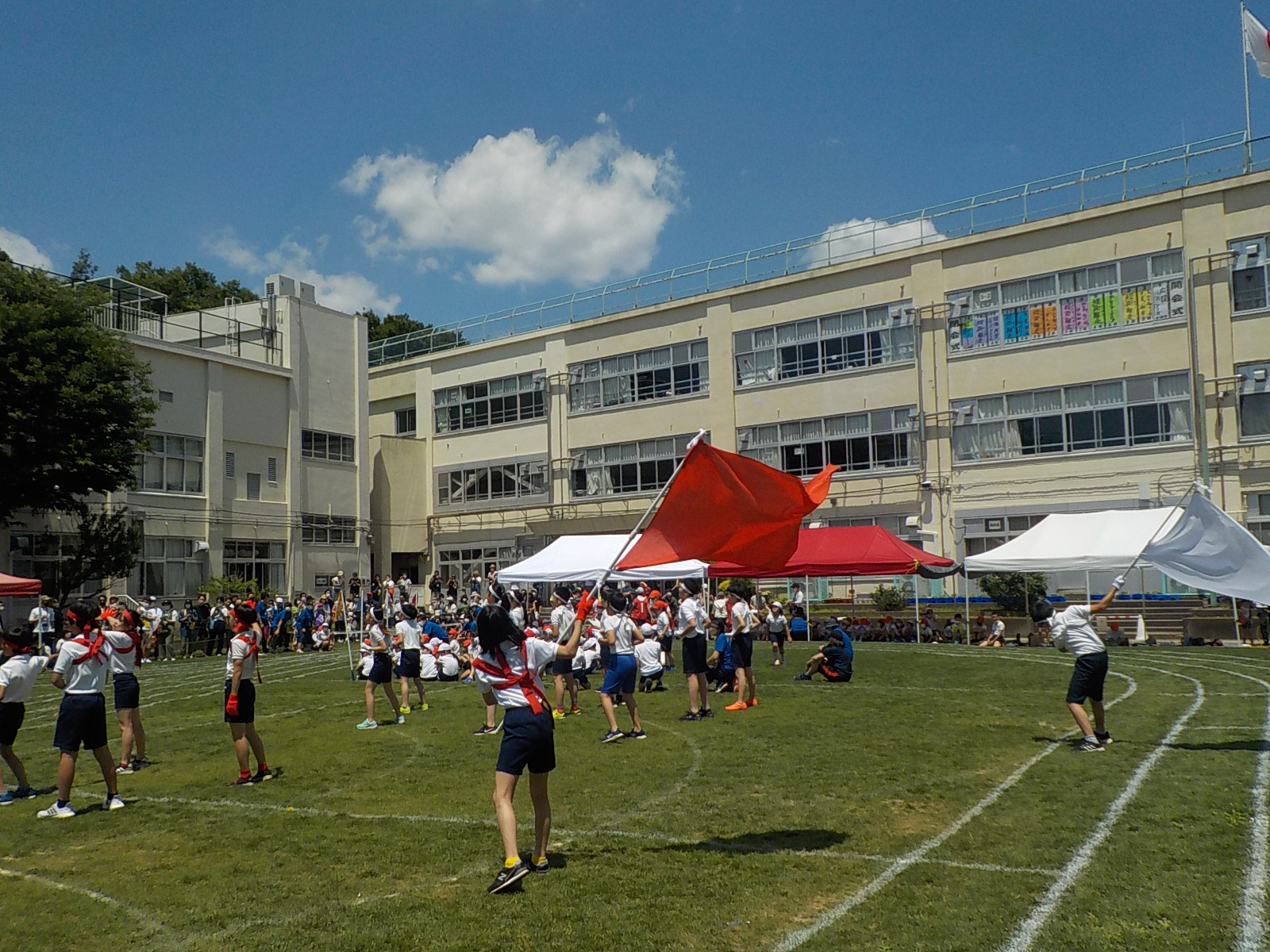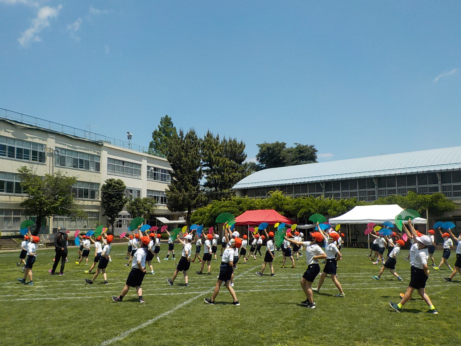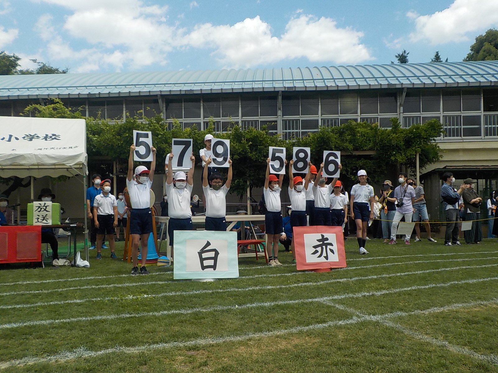 前日の雨から一転、厳しい暑さとなった28日、第69回運動会が開催されました。今年は3年ぶりに全校児童が校庭に集合し行われました。各学年の演目に6年生が手拍子を送ると、その拍手が全校に広がる場面もあり心温まる運動会になりました。赤白の応援も応援団を中心に盛り上がり、今年の結果はわずか7点差で赤組が勝利しました。「最後まで努力の成果出し切ろう」のスローガンの通り、みんなが全力を出し切った運動会でした。
