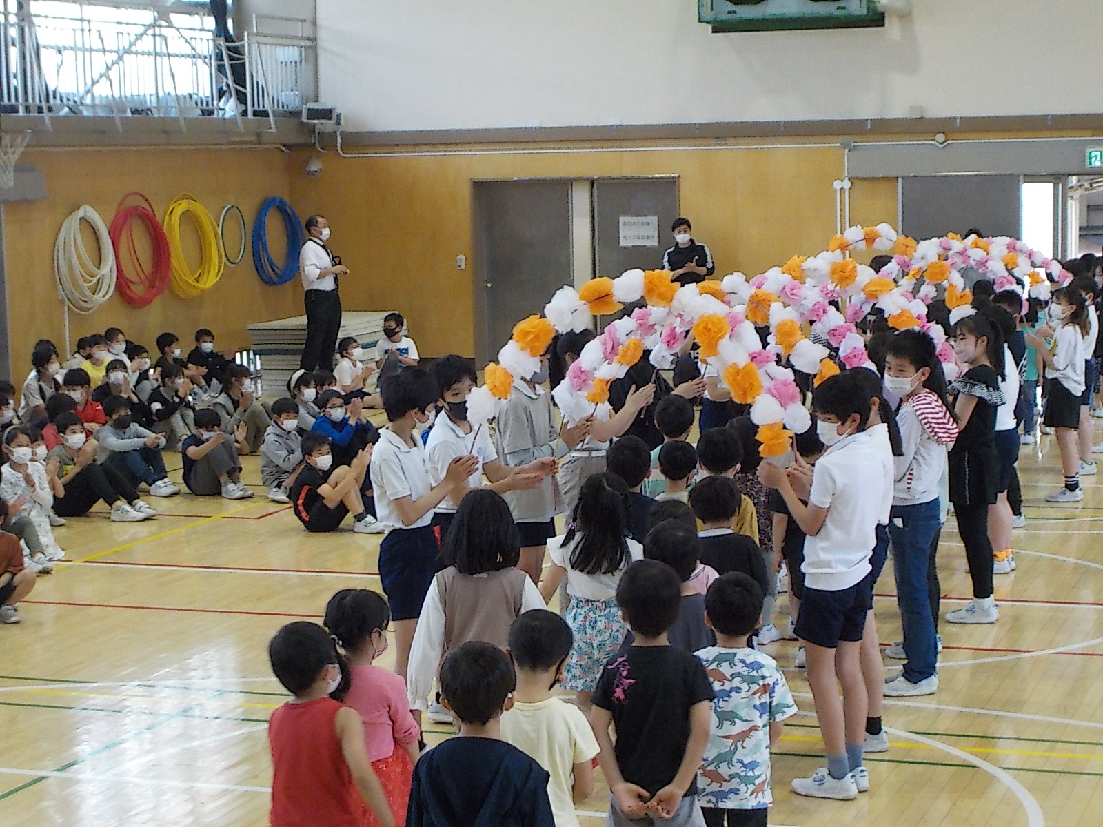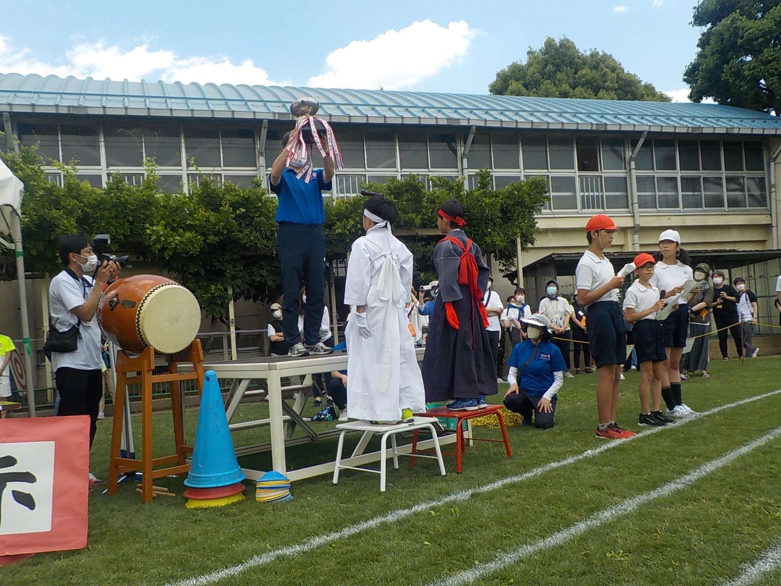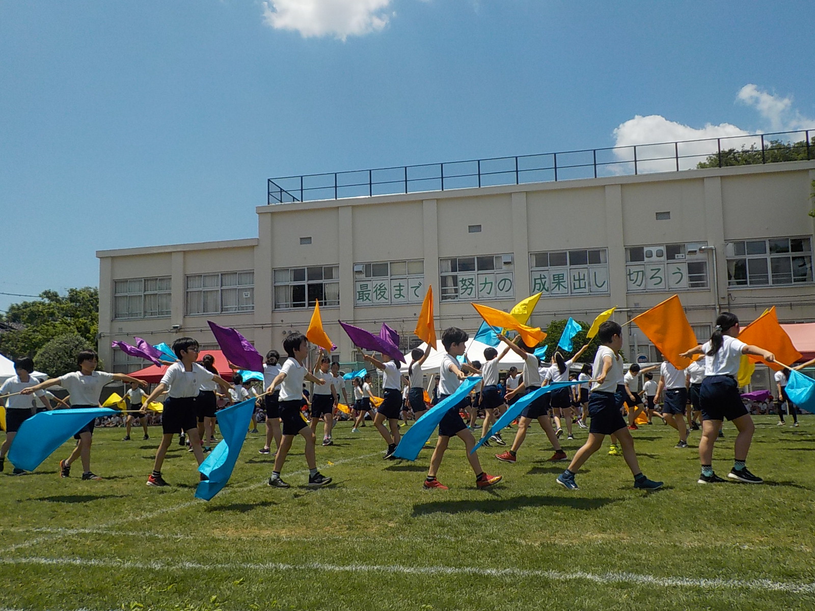前日の雨から一転、厳しい暑さとなった28日、第69回運動会が開催されました。今年は3年ぶりに全校児童が校庭に集合し行われました。各学年の演目に6年生が手拍子を送ると、その拍手が全校に広がる場面もあり心温まる運動会になりました。赤白の応援も応援団を中心に盛り上がり、今年の結果はわずか7点差で赤組が勝利しました。「最後まで努力の成果出し切ろう」のスローガンの通り、みんなが全力を出し切った運動会でした。