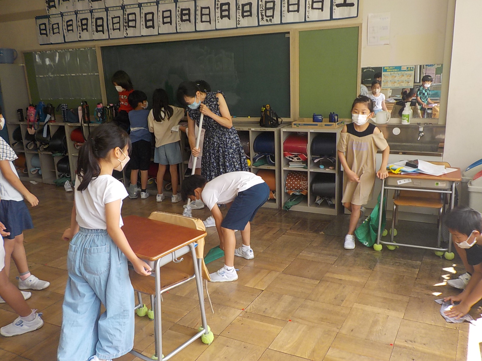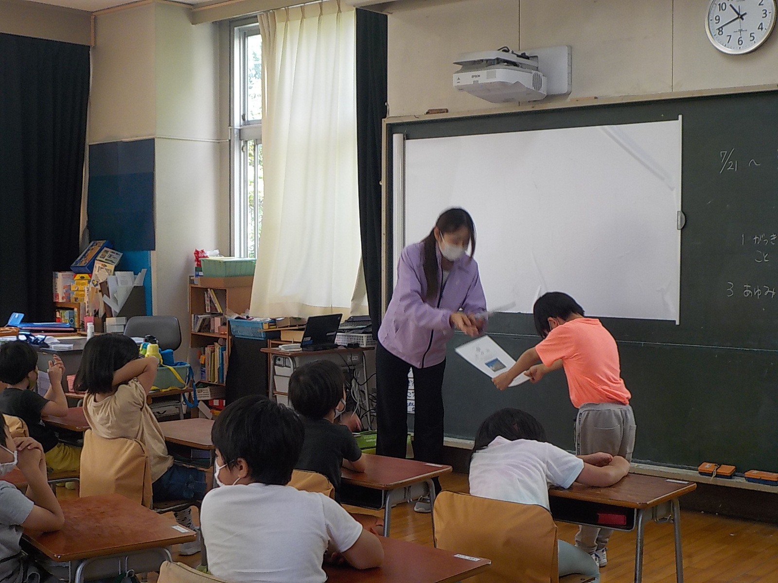 一学期最終日を迎え、各クラスでは大掃除やお楽しみ会など、それぞれの学級で1学期のまとめをしました。また、一人一人に「あゆみ」通知表が渡され、1学期の成長や頑張りについて担任の先生から声をかけてもらいました。明日からは42日間の夏休みが始まります。