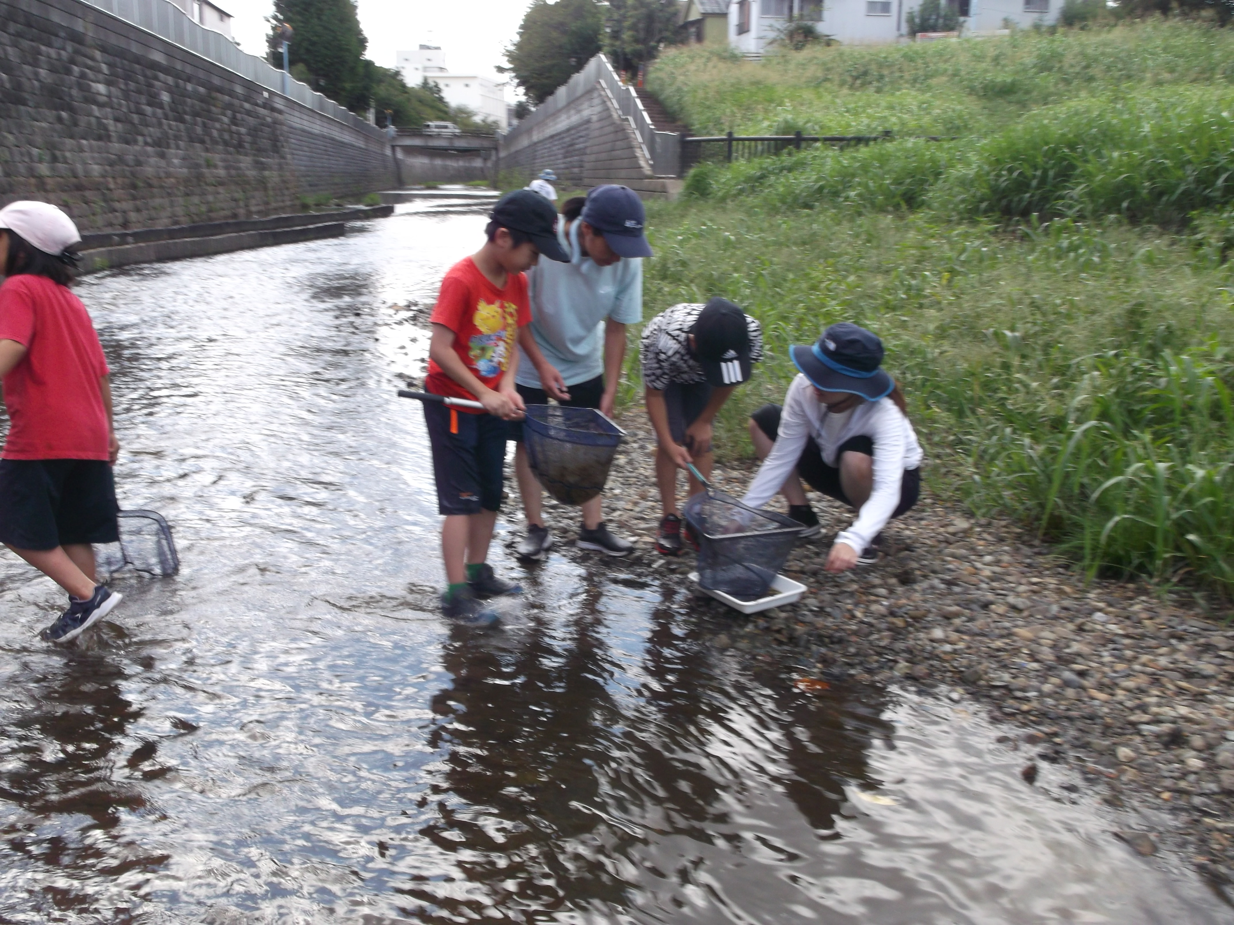 4年生が総合の学習で川の生き物調べをしました。済美公園から善福寺川の河原におり、環境ネットワークの皆さんのレクチャーを受け、川に入って自然観察を行いました。小魚やエビなどを見つけ、道路から眺めているだけでは分からない、自然の豊かさを体感しました。