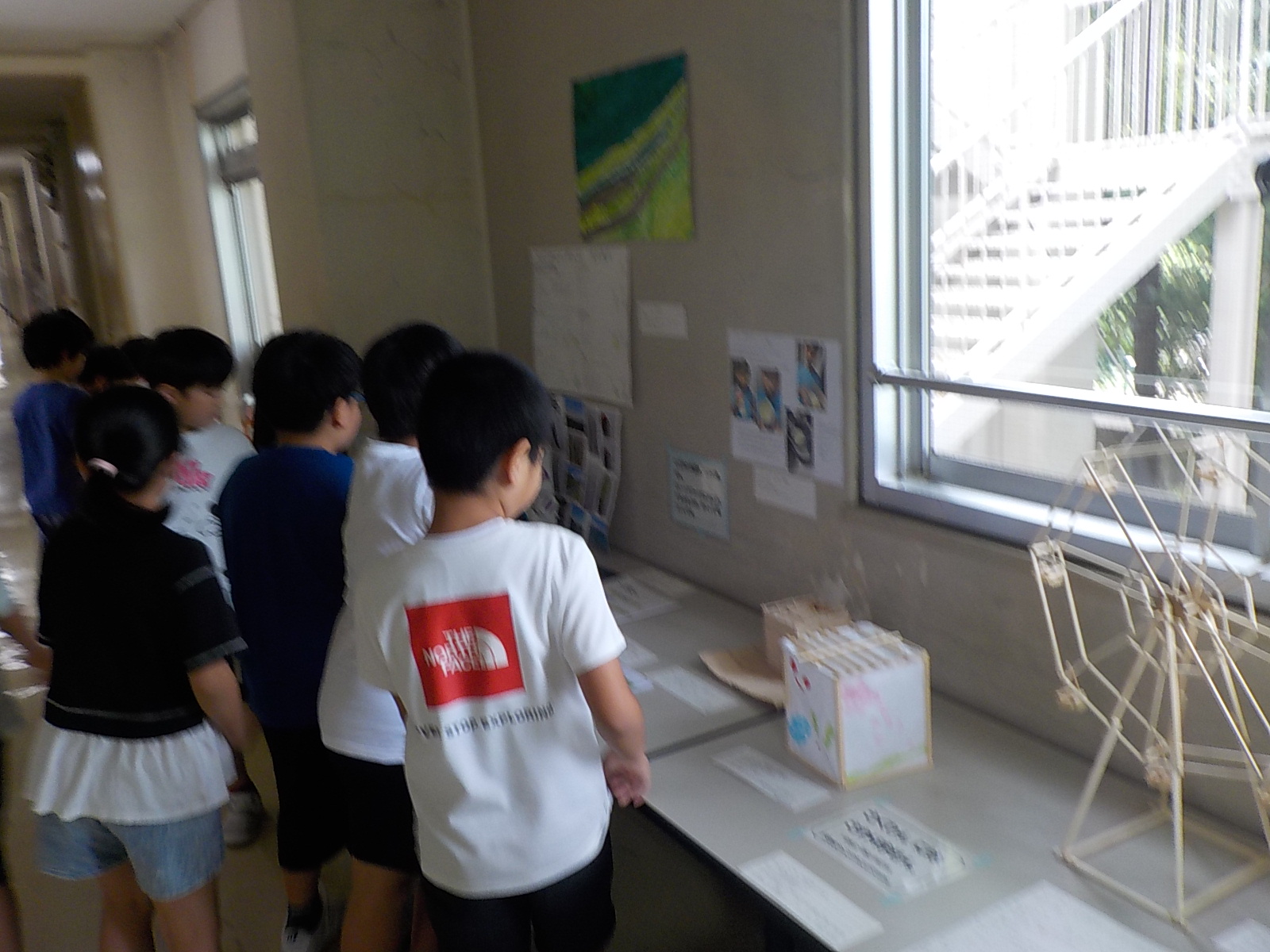 夏休みに取り組んだ子供たちの作品展が開かれました。時間をかけ取り組んだ研究や思い出の旅行記、工作や観察日記など今年は113作品が出品されました。休み時間になると多くの子供たちが作品に見入っています。20日まで展示されています。