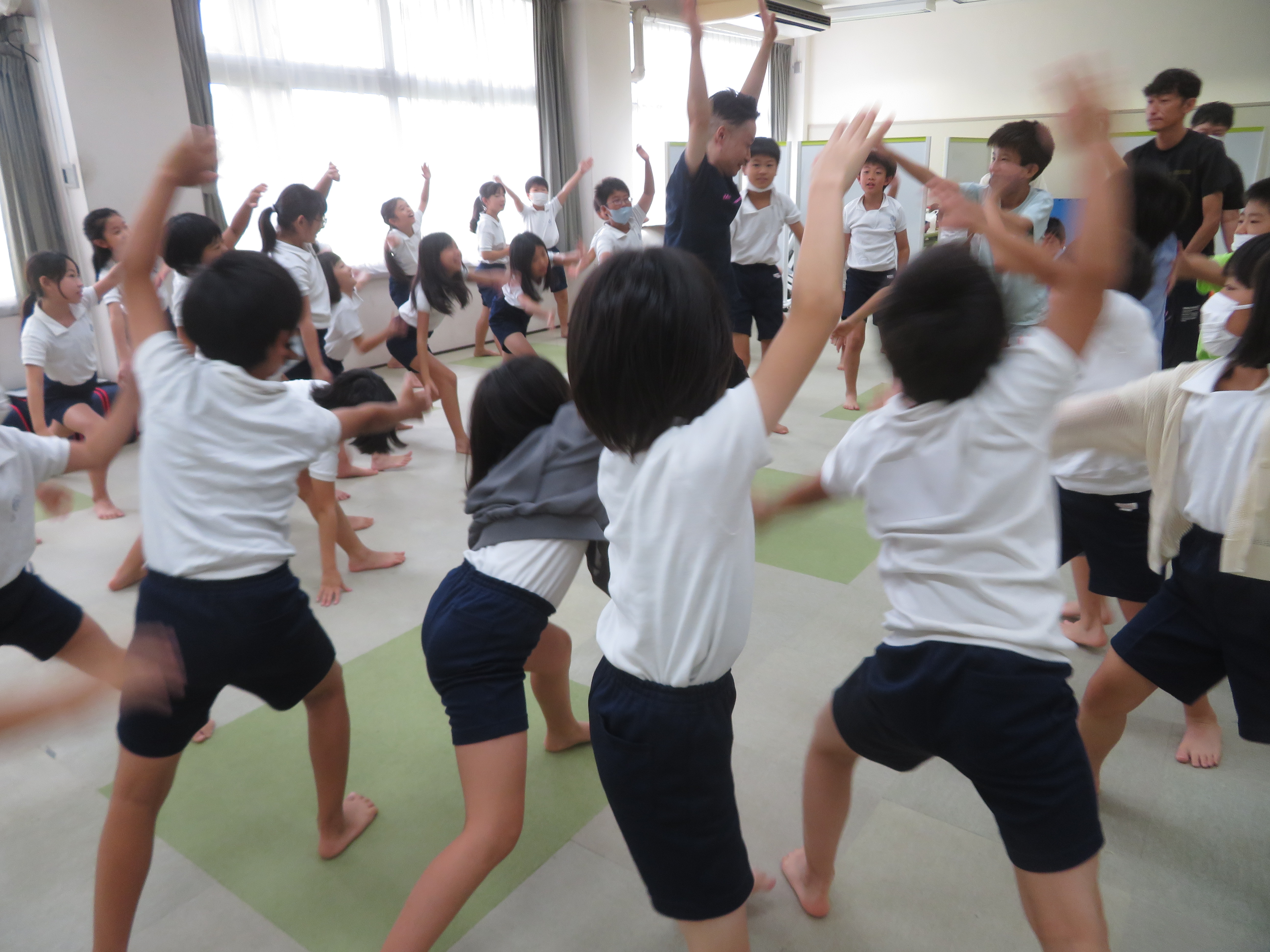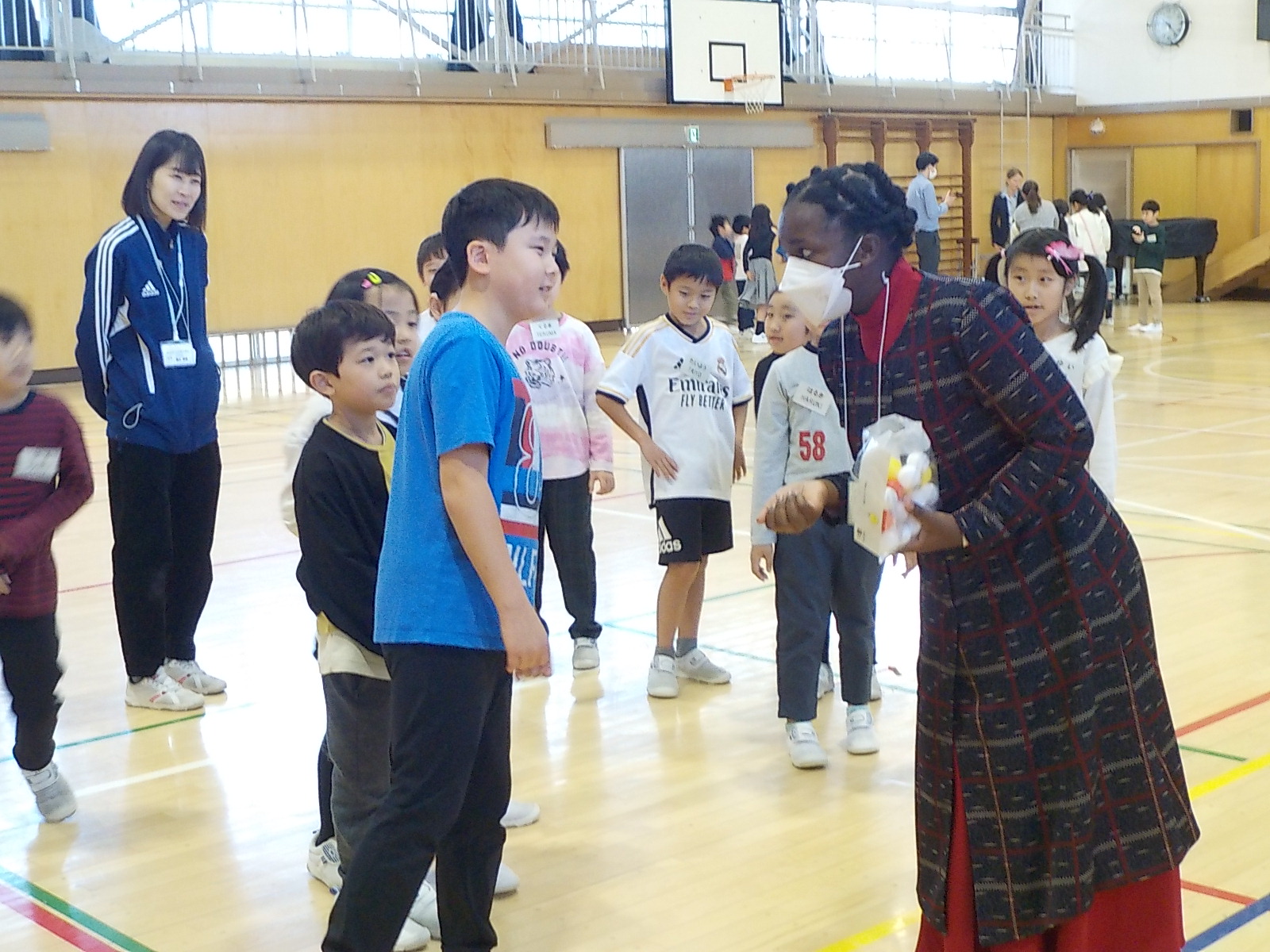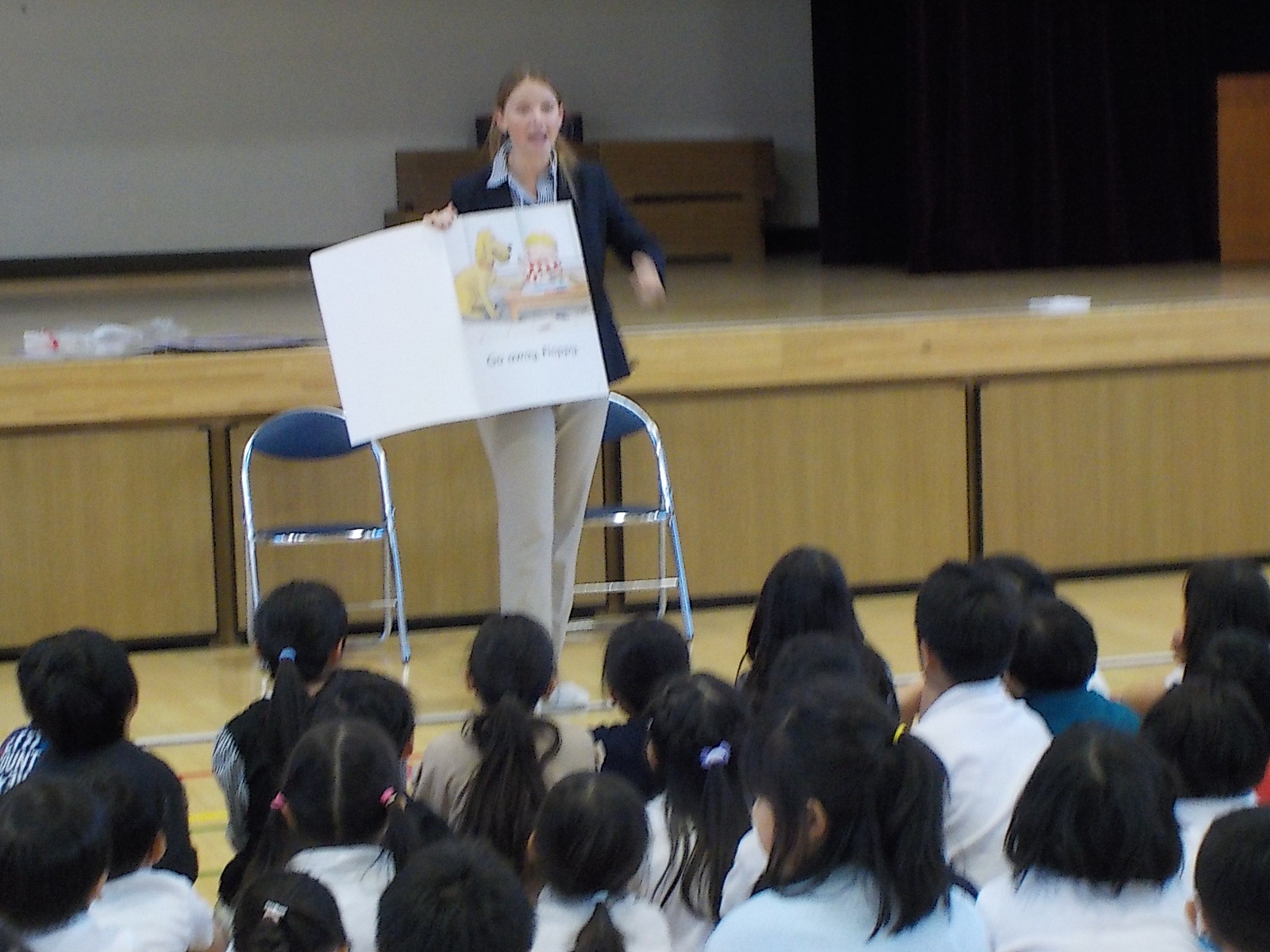 英語による発信力向上をねらい、外国語に触れる機会をつくる、イングリッシュキャラバンが体育館で行われました。5名のネイティブ人材が来校し、1~6時間目まで、子供たちとゲームや読み聞かせで英語での交流を行いました。