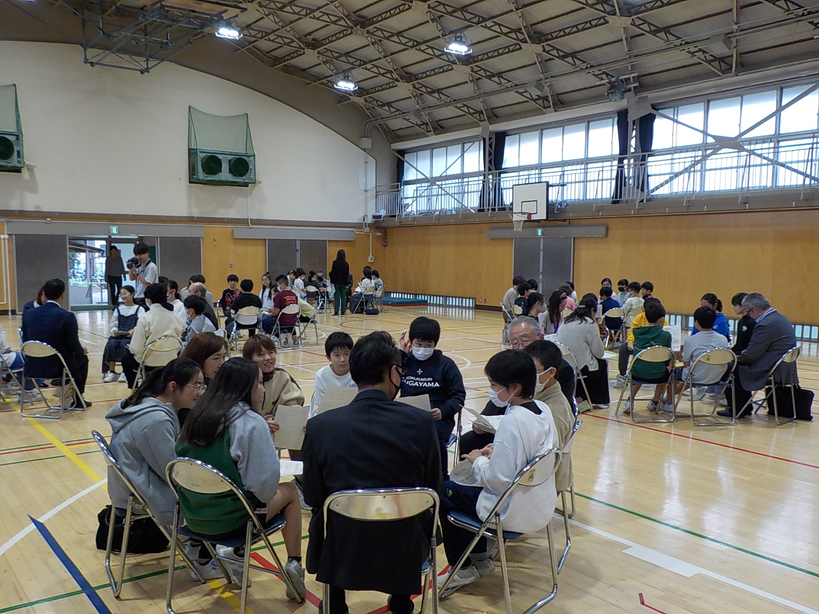 杉並区の教育ビジョンや学校の教育目標について、区の教育委員会の職員の方や地域の方々と6年生の子供たちが意見交換会を行いました。ビジョンのテーマ「みんなのしあわせを創る」にはどんな学校にするべきか、教育目標「大事な一人になる・みんなと生きる」ために自分たちにできることはないか、子供たちの前向きな意見がたくさん出ました。
