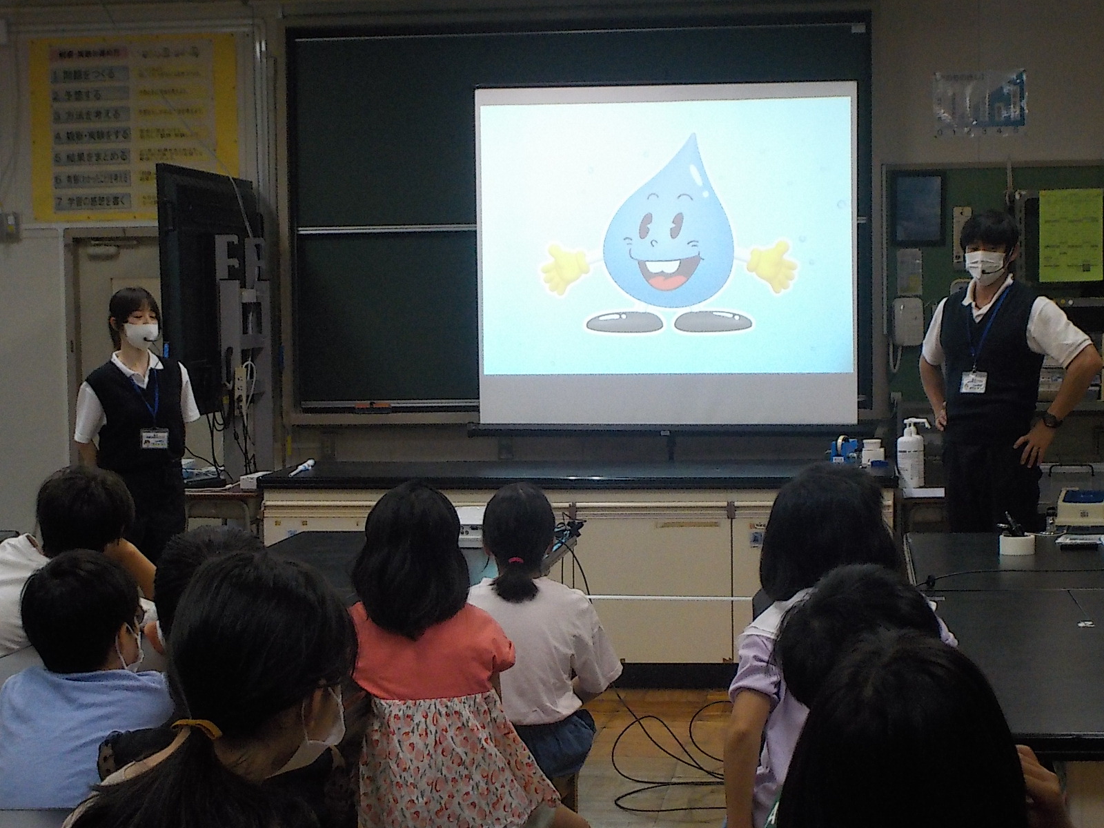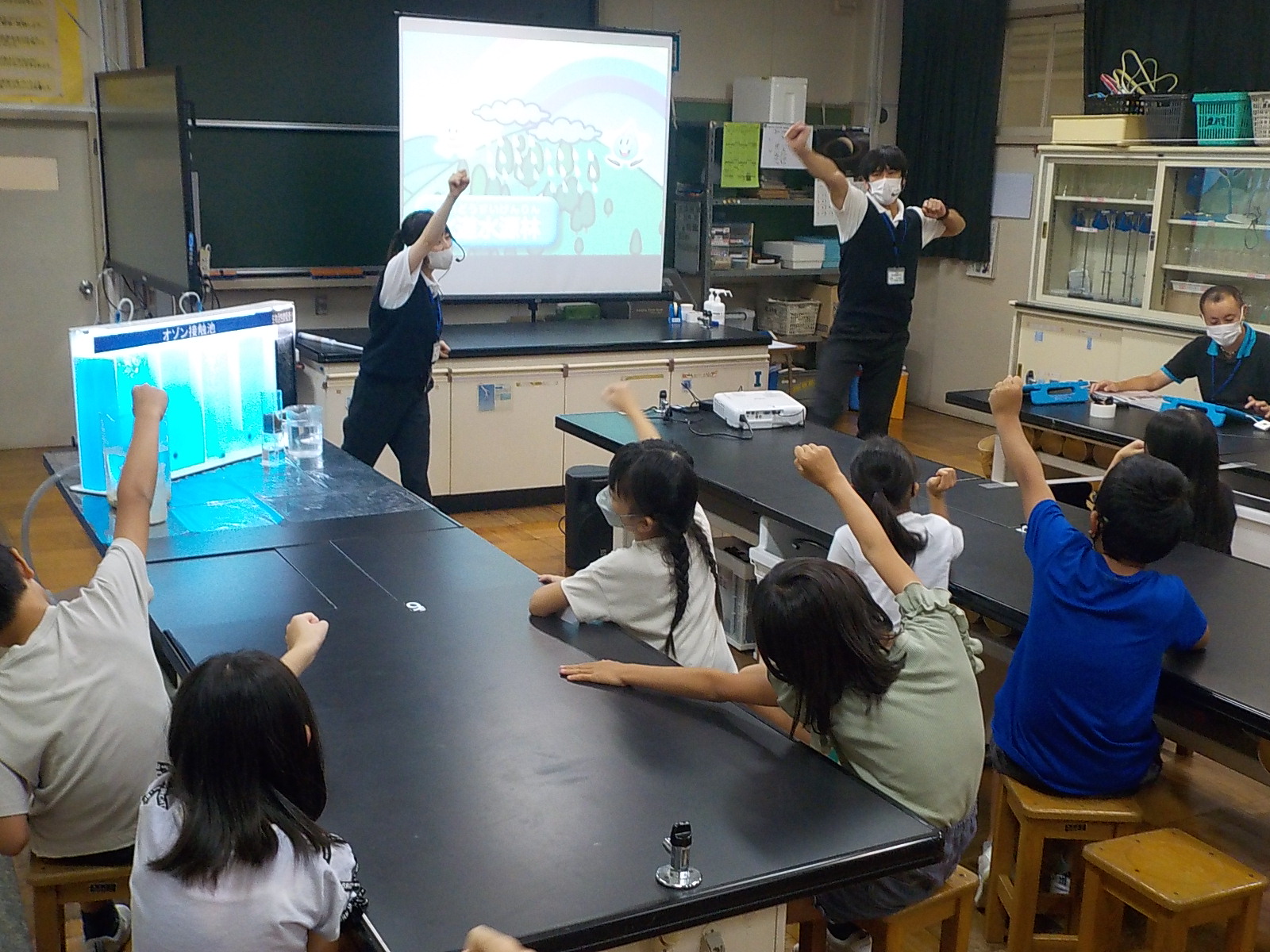4年生が社会科の学習で東京都水道局の出前授業「水道キャラバン」に参加しました。水源林の雨水がどのように飲料水になるのか、毎日飲んでいる水がどのように私たちに届けられているのか、映像や実験で楽しく学ぶことができました。