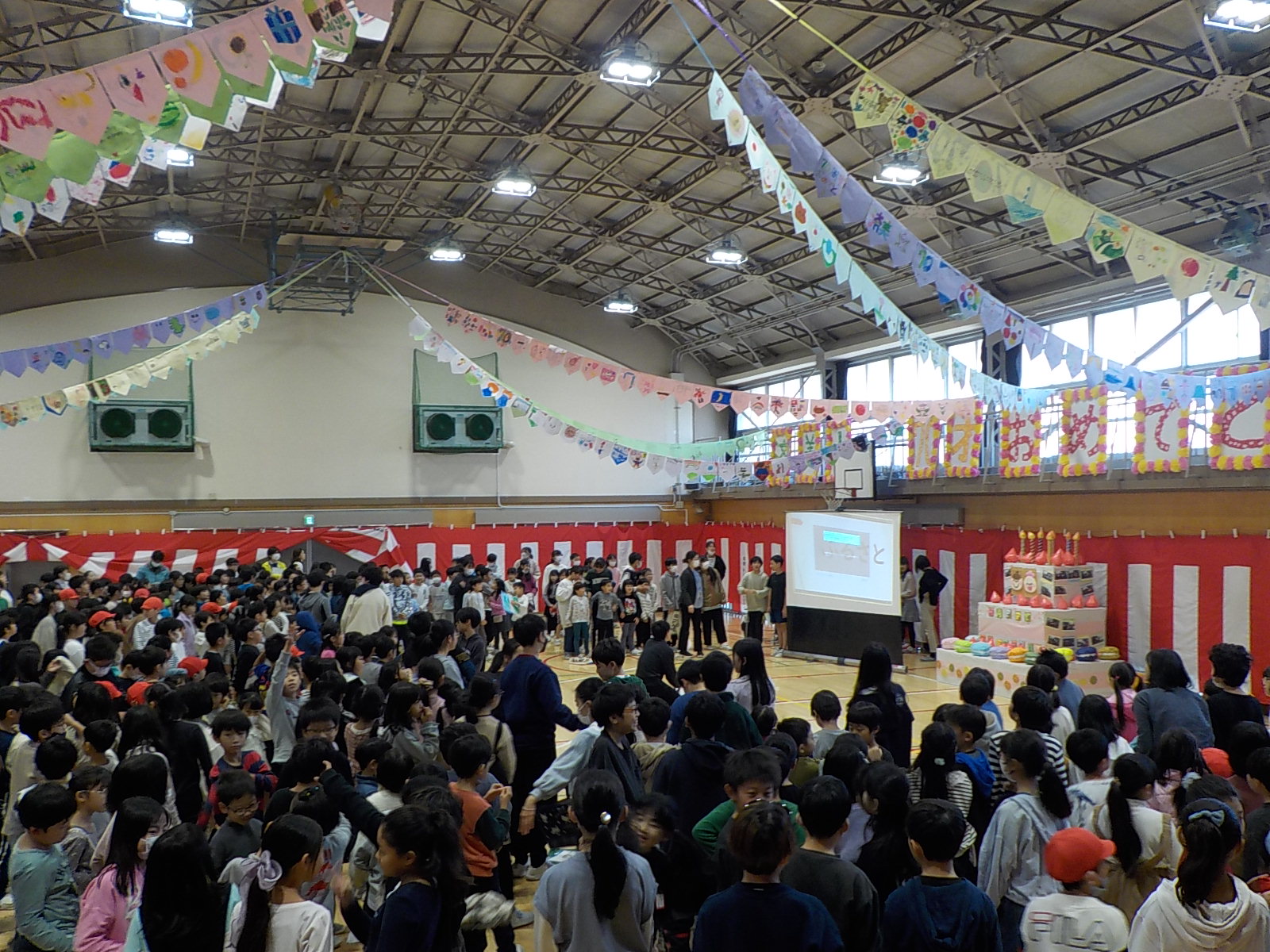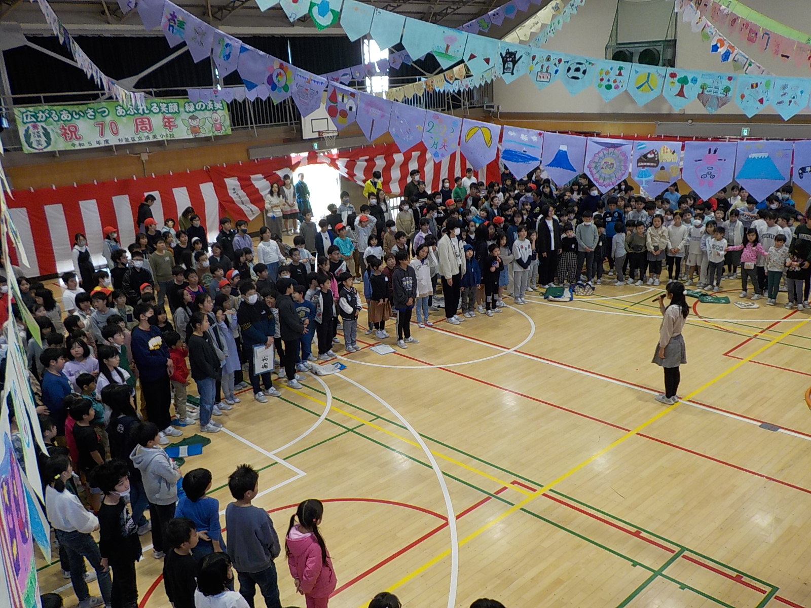 創立70周年を記念し、代表委員や集会委員が準備を進め、済美小70才おめでとう集会がひらかれました。前半はにっこり班で校内オリエンテーリングをしながら数々のミッションをクリアし、それぞれの班がアイテムを集めていきます。後半は全校児童が体育館に集まり、それぞれの班で集めたアイテムが一つになり、大きなバースデーケーキが出来上がりました。みんなでふるさとや校歌を歌い70周年のお祝いをしました。