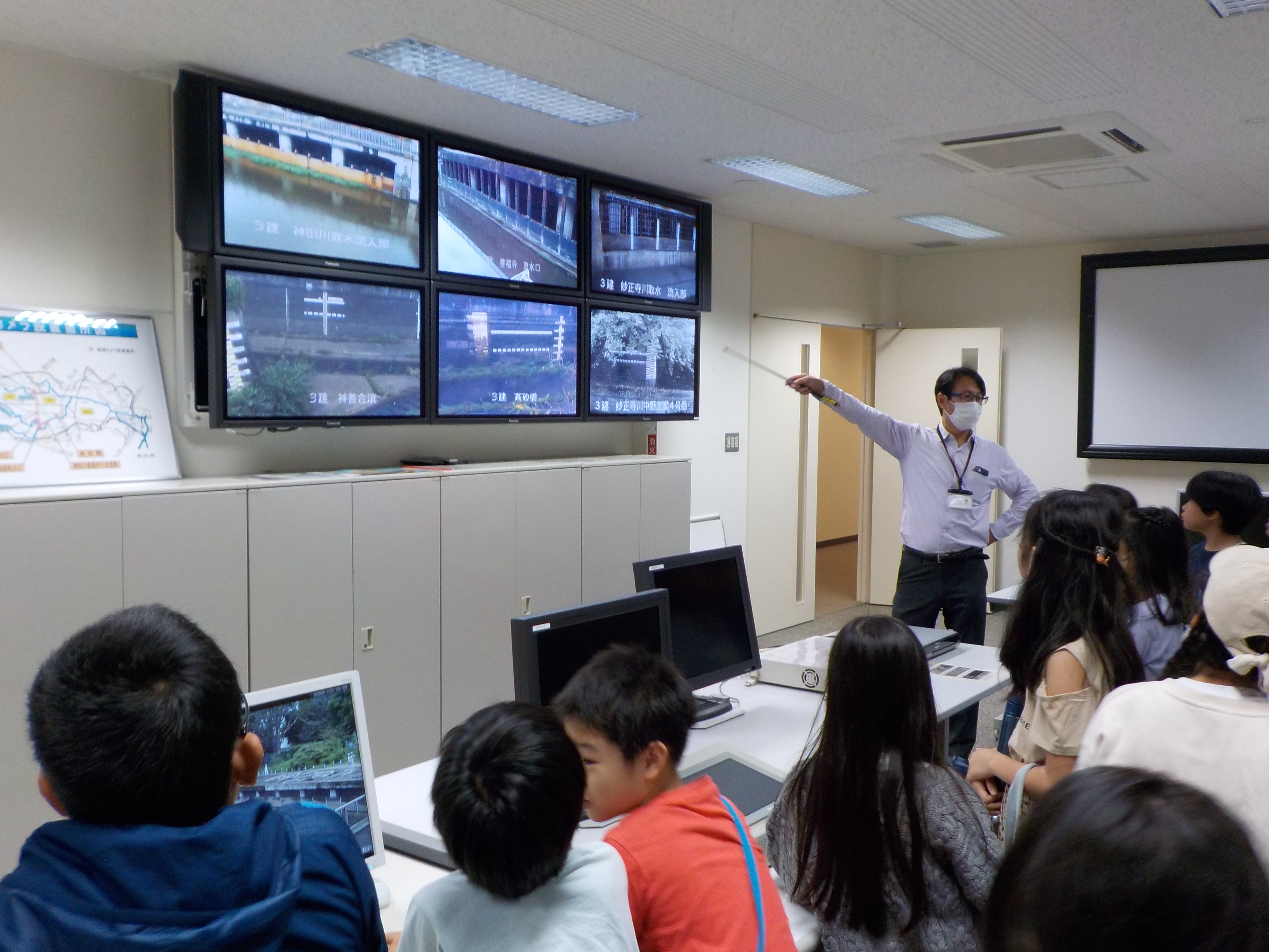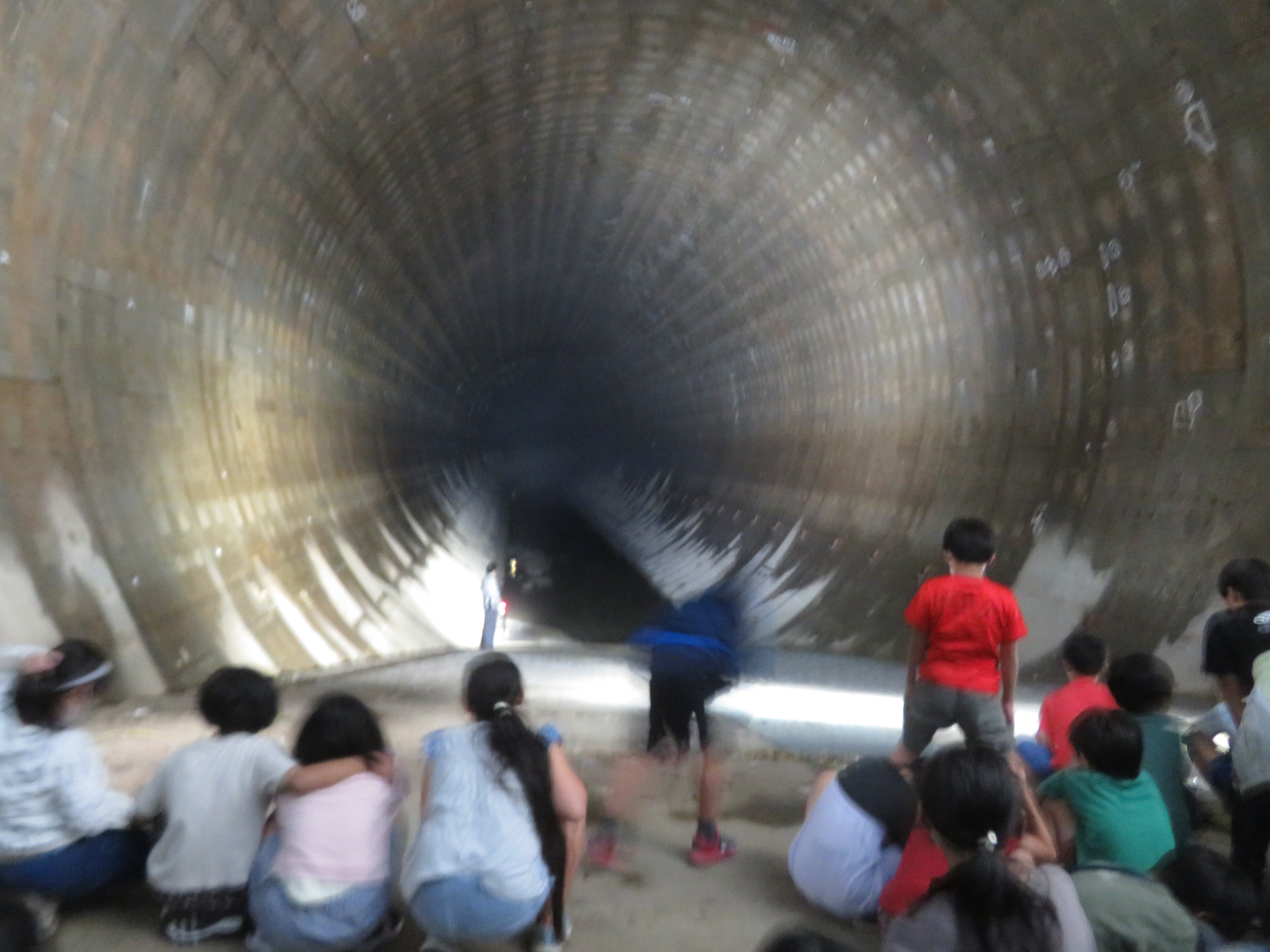 社会科の学習で4年生が環状7号線の地下にある調整池の見学をしました。ゲリラ豪雨などによる洪水から私たちの生活を守る大切な施設です。施設についての説明を受けた後、13階分ある階段を降り、調整池に着くとみんなその大きさに圧倒され、驚いていました。
