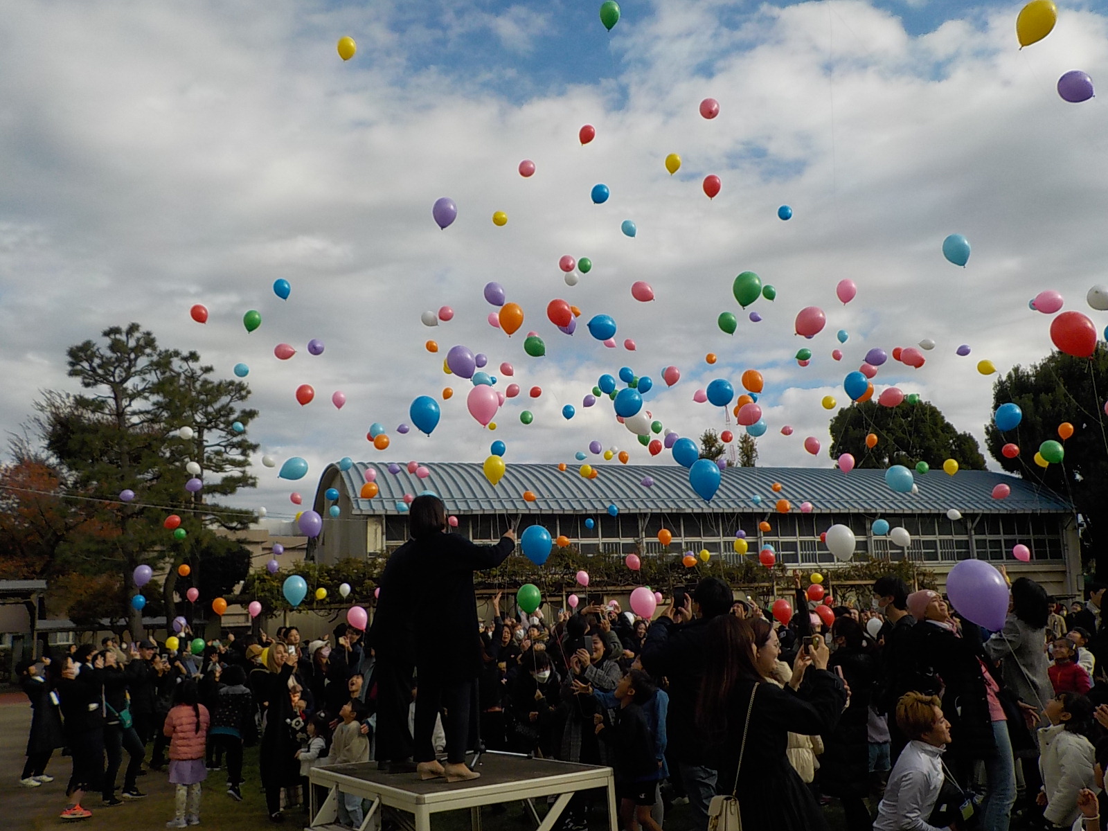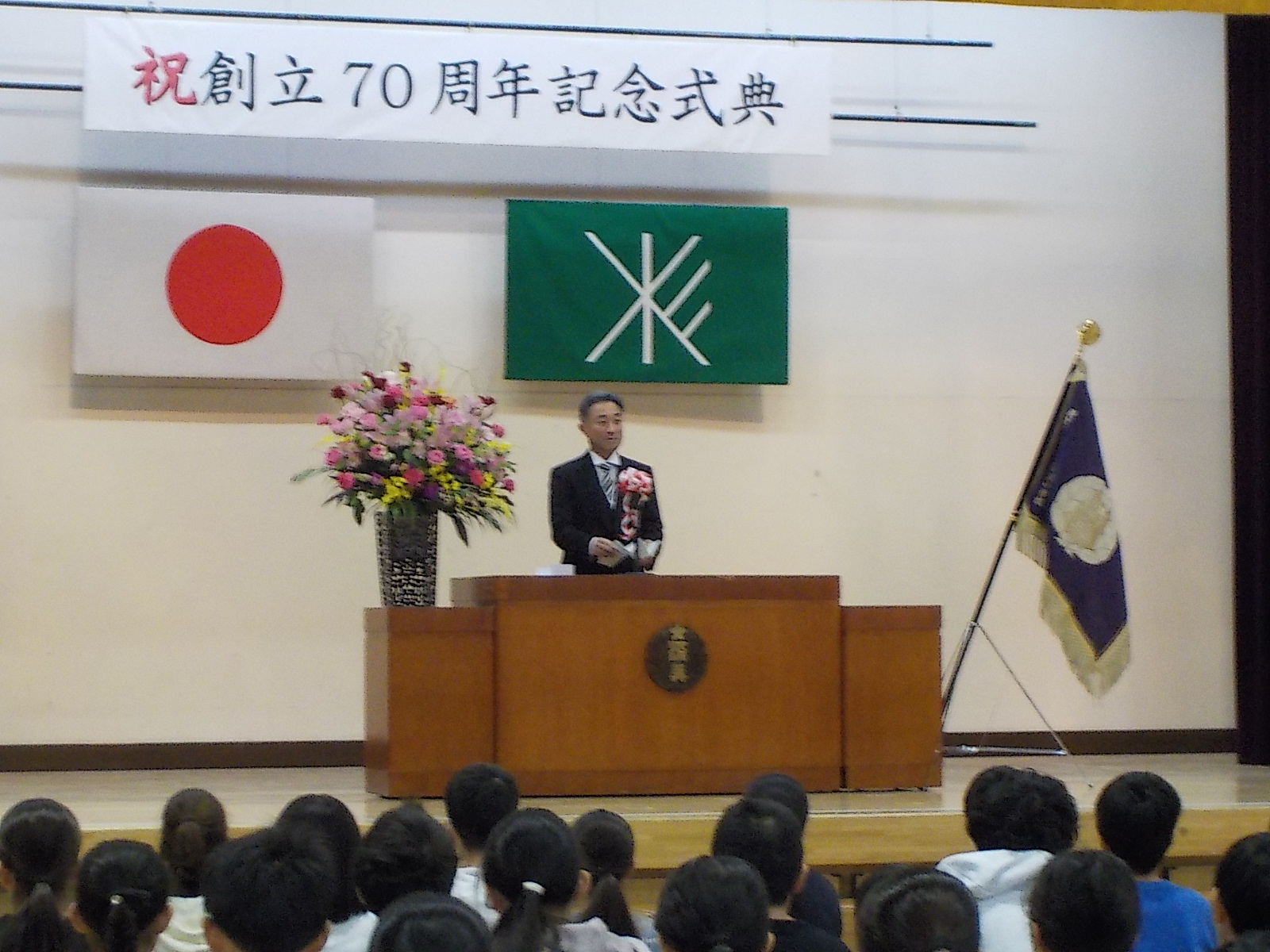 地域の皆様をお招きして、済美小学校70周年記念式典を行いました。式は4年生の力強いソーラン節で始まり、56年生の呼びかけや「ふるさと」の合唱を披露し、地域の方からたくさんの拍手をいただきました。午後にはPTA親子活動として「バルーンリリース」をおこない。家族の皆さんと一緒に素敵な思い出を作ることができました。