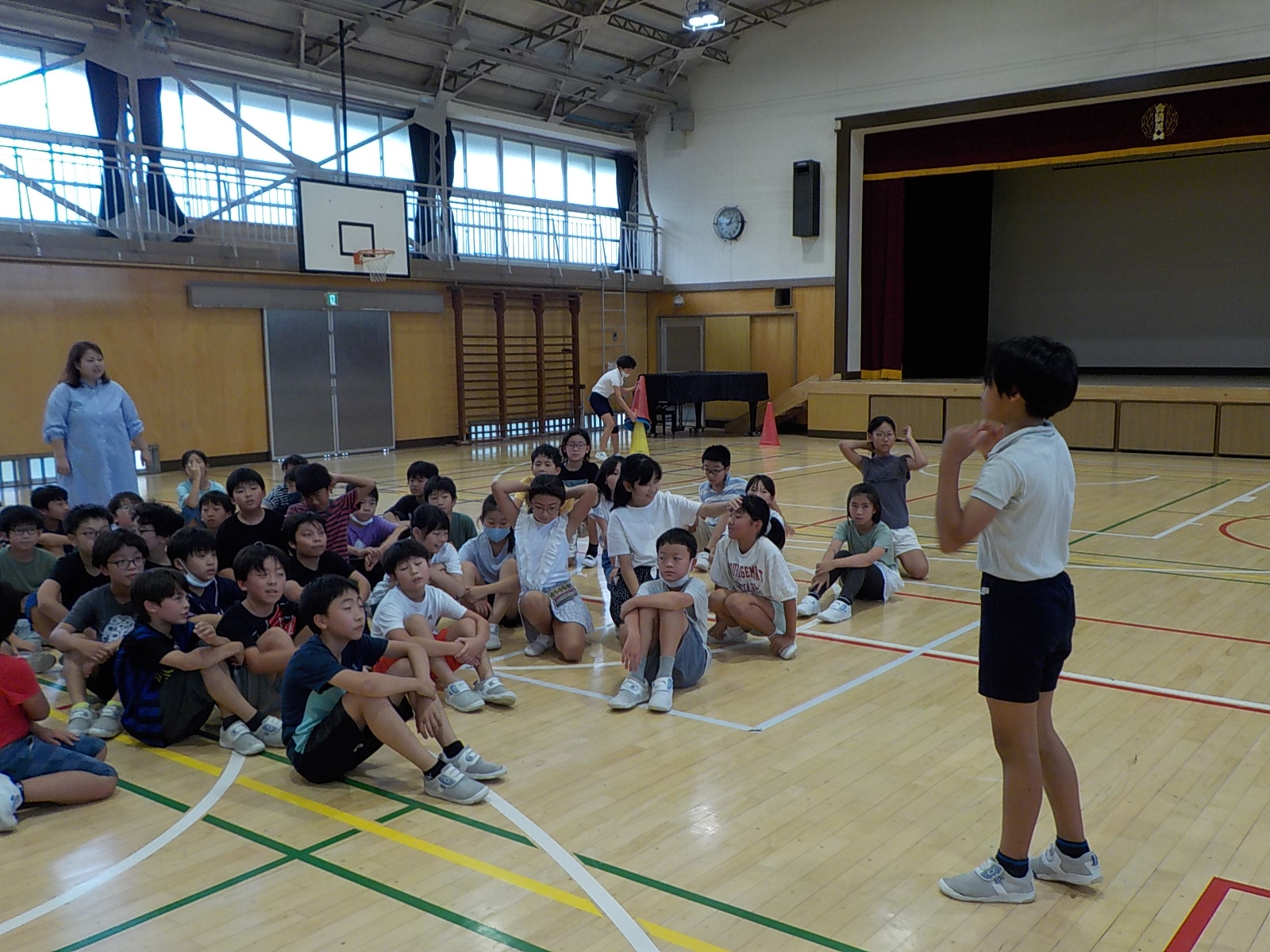 6年生が5年生に6月に実施した下田移動教室についてプレゼンし、移動教室の楽しみ方や係りの仕事、注意点などをレクチャーしました。5年生は10月末に初めての宿泊移動教室があります。移動教室に向けての先輩の説明をみんな真剣に聞いていました。