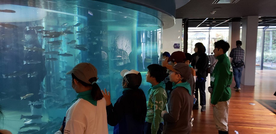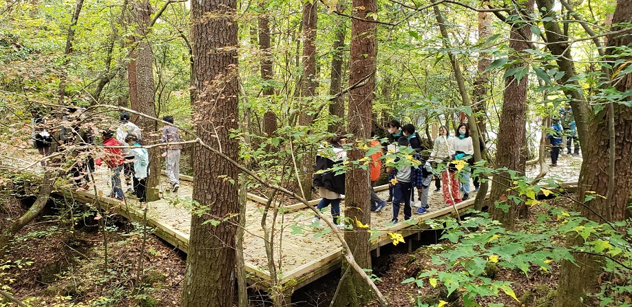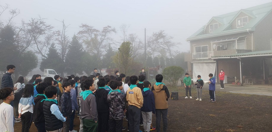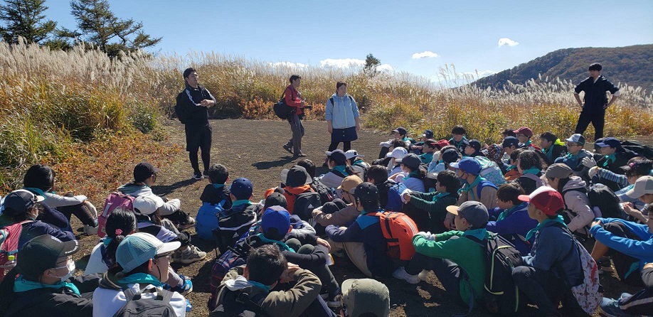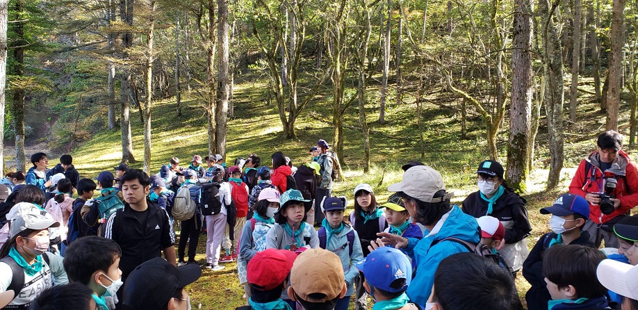いよいよ最終日です。本日も朝は霧の中での朝会となりました。朝食後、河口湖フィールドセンターでバードコール、キーホルダー作りに取り組み、その後、富士山科学研究所でグループごとにナイチャーゲームを楽しみました。昼食後、高速道路で東京へ帰る予定です。