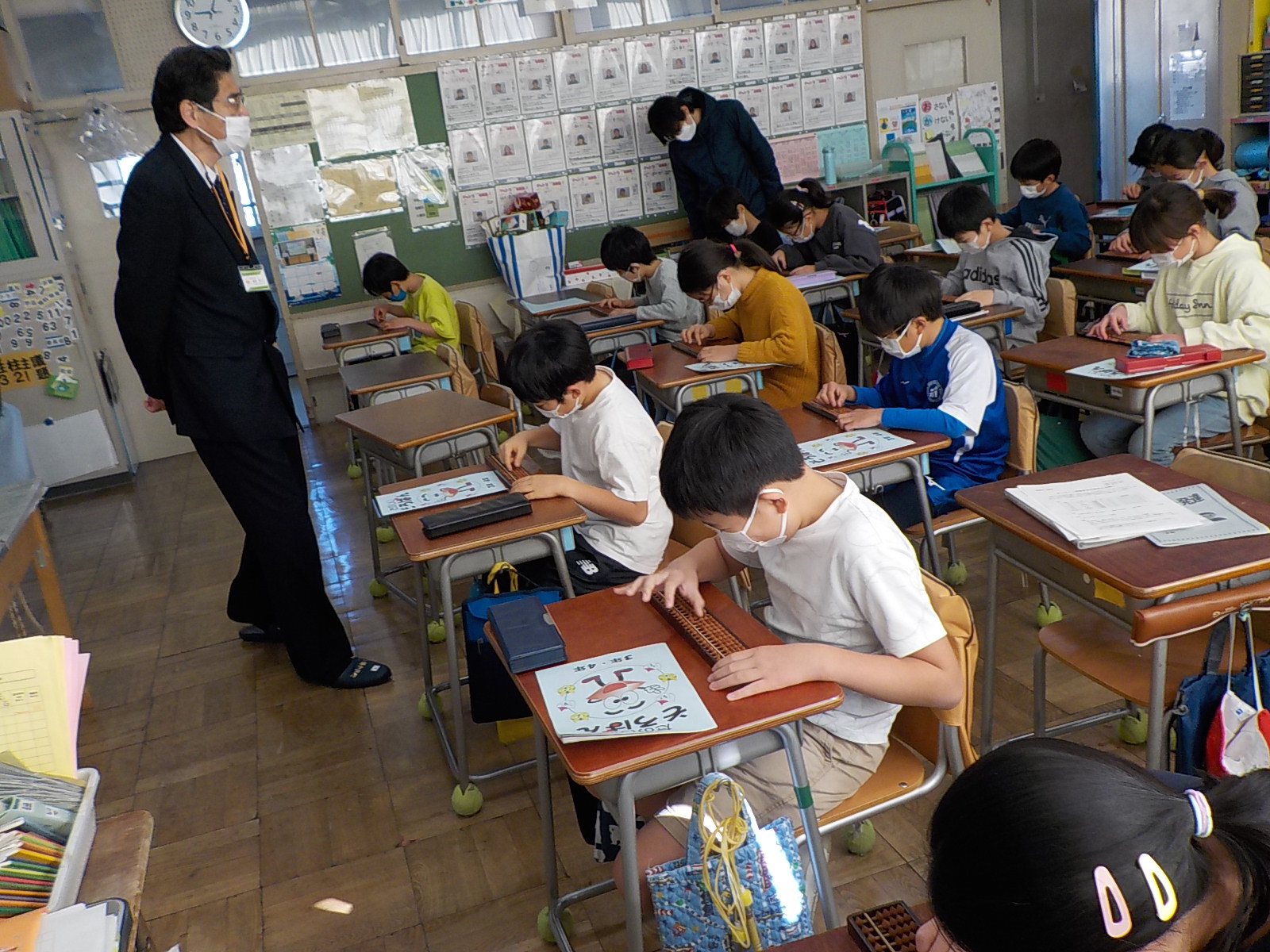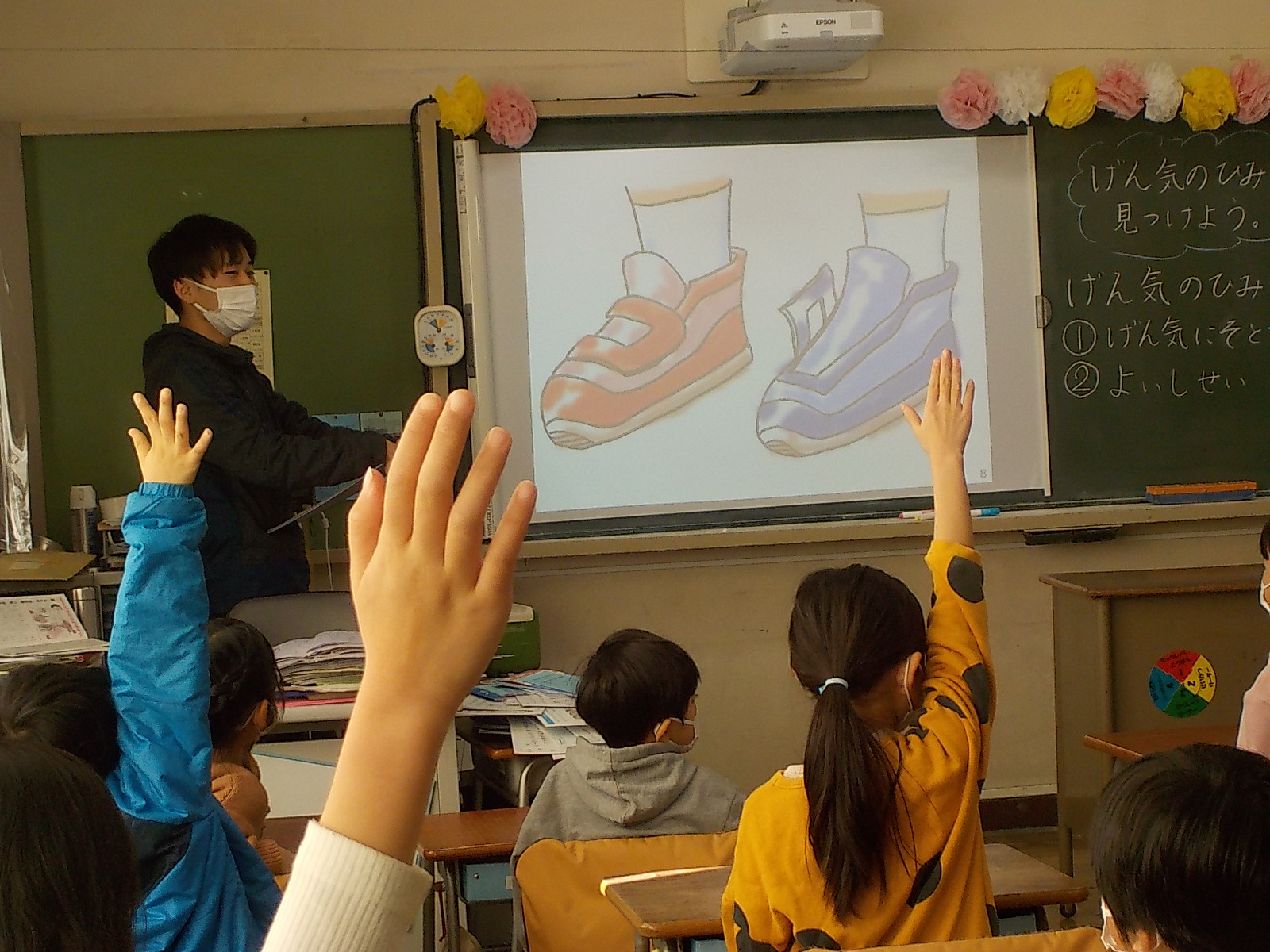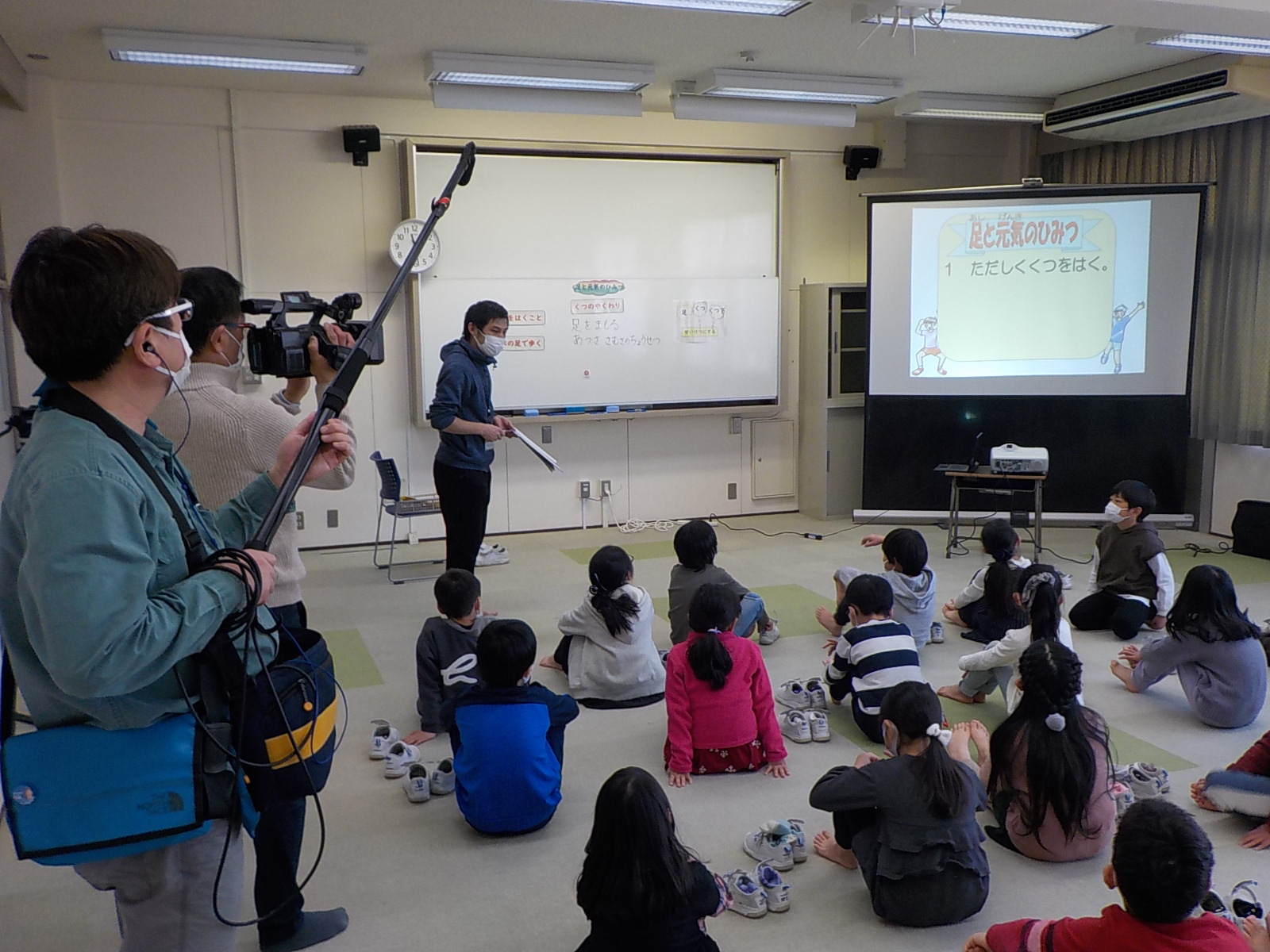今週から2月4日まで、足育月間として各クラスで足育授業を行います。低学年は正しい靴の履き方、中学年は土ふまずの大切さ、高学年は自分に合った靴の選び方を学習します。また、足指体操を各家庭で継続的に取り組んでもらっています。20日には足育授業が広報番組「すぎなみスタイル」に取材を受けました。2月の番組で放送されます。