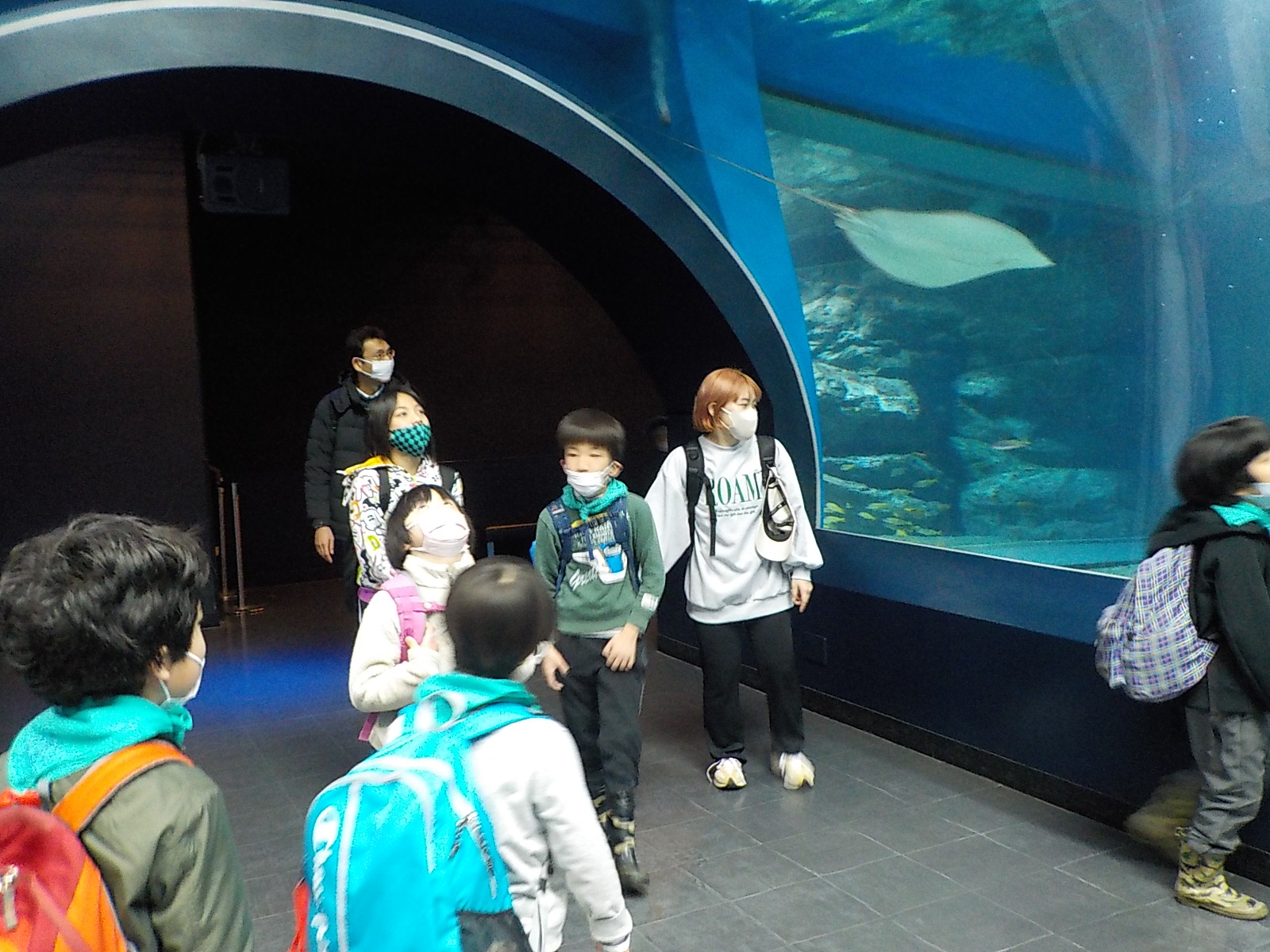 雪交じりの雨模様の中、かしのみ学級の卒業遠足で品川アクアパーク水族館へ出かけました。館内では、海底トンネルで大きなエイを見上げたり、イルカショーで迫力ある演技を見たり、水族館を十分に楽しみました。行き帰りは高学年児童が低学年児童の手を引きながら歩き、高学年らしい姿も見せてくれました。