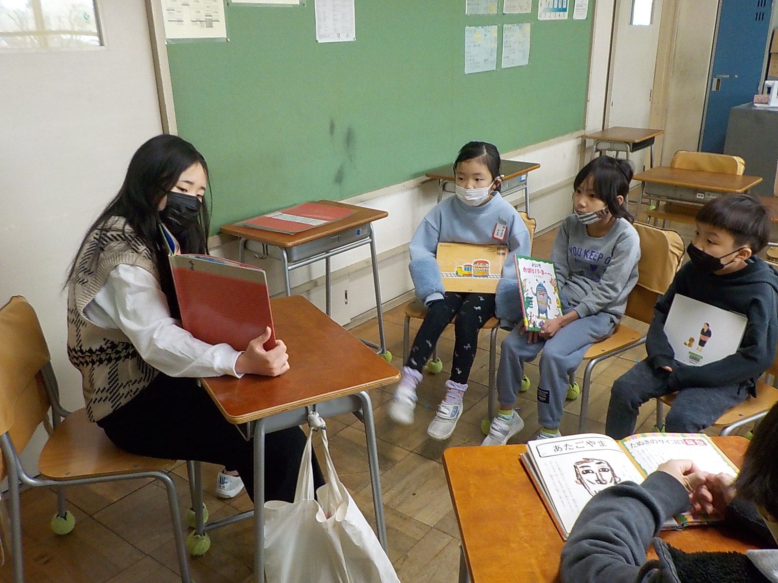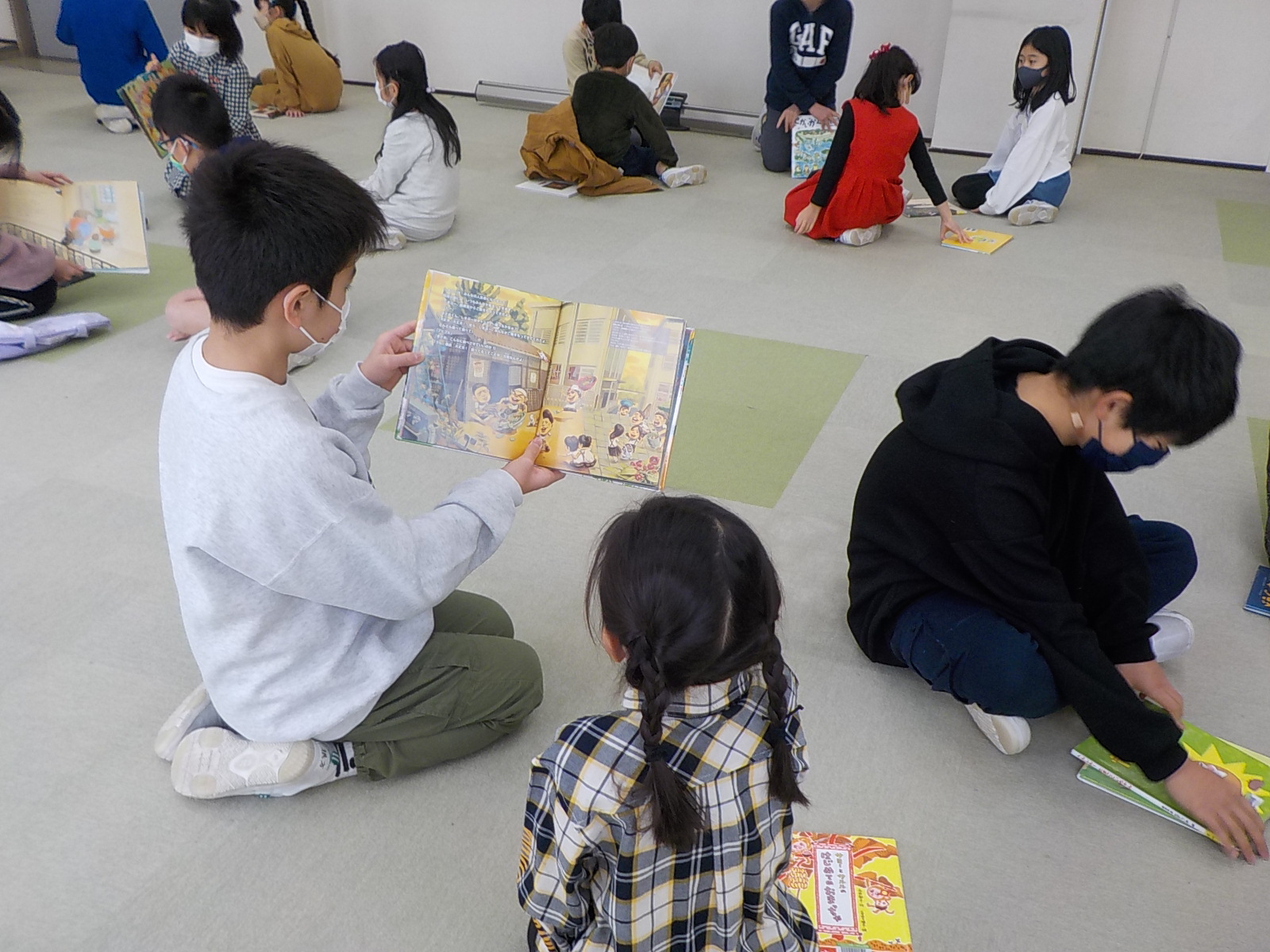 読書週間が2月7日から2週間行われ、19日には異学年と読書を通して交流する「読書交流」を実施しました。それぞれがお気に入りの本を持ち寄り、読み聞かせをします。6年生都1年生、2年生と5年生、3年生とかしのみ学級、それぞれが相手の学年を考え、下学年は一生懸命に上学年丁寧に読み聞かせをする姿が見られました。4年生は各学級でおすすめの本を紹介し合う「ビブリオバトル」に挑戦しました。