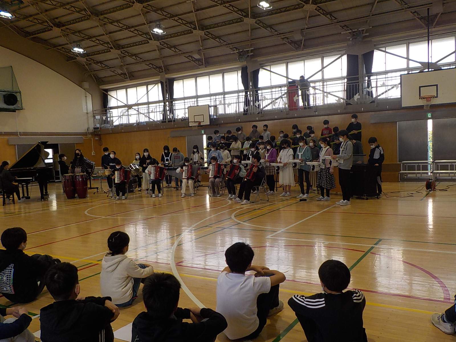 6年生を送る会を行いました。昨年に続く感染対策で、各学年が体育館に入れ替わり、それぞれの出し物で感謝の気持ちを表しました。6年生からは「群青」の合奏をお返しに披露してもらいました。5年生以外はオンラインで演奏を聴くことになりましたが、最高学年としての立派な姿と演奏をそれぞれの心に焼き付けることができました。