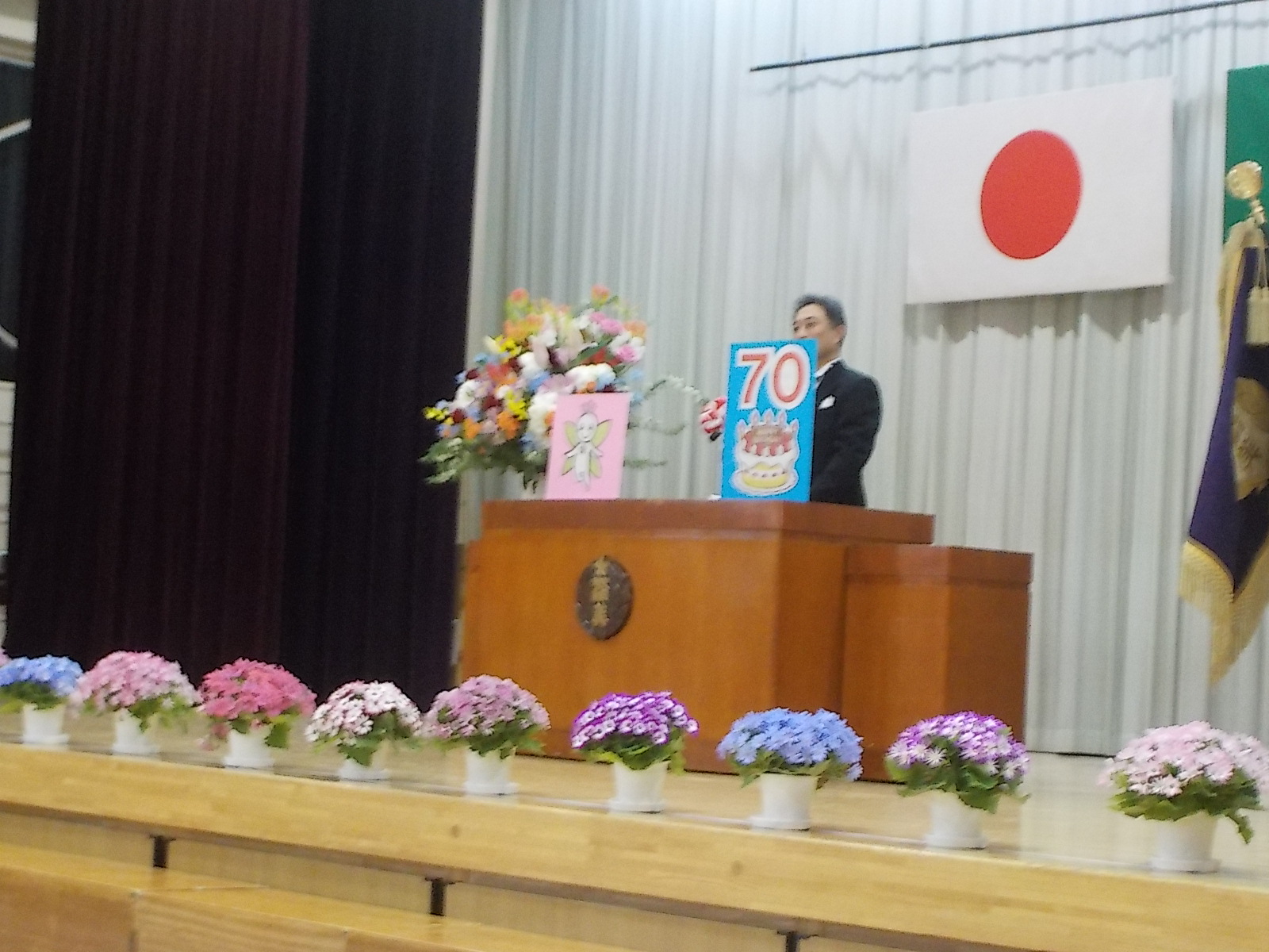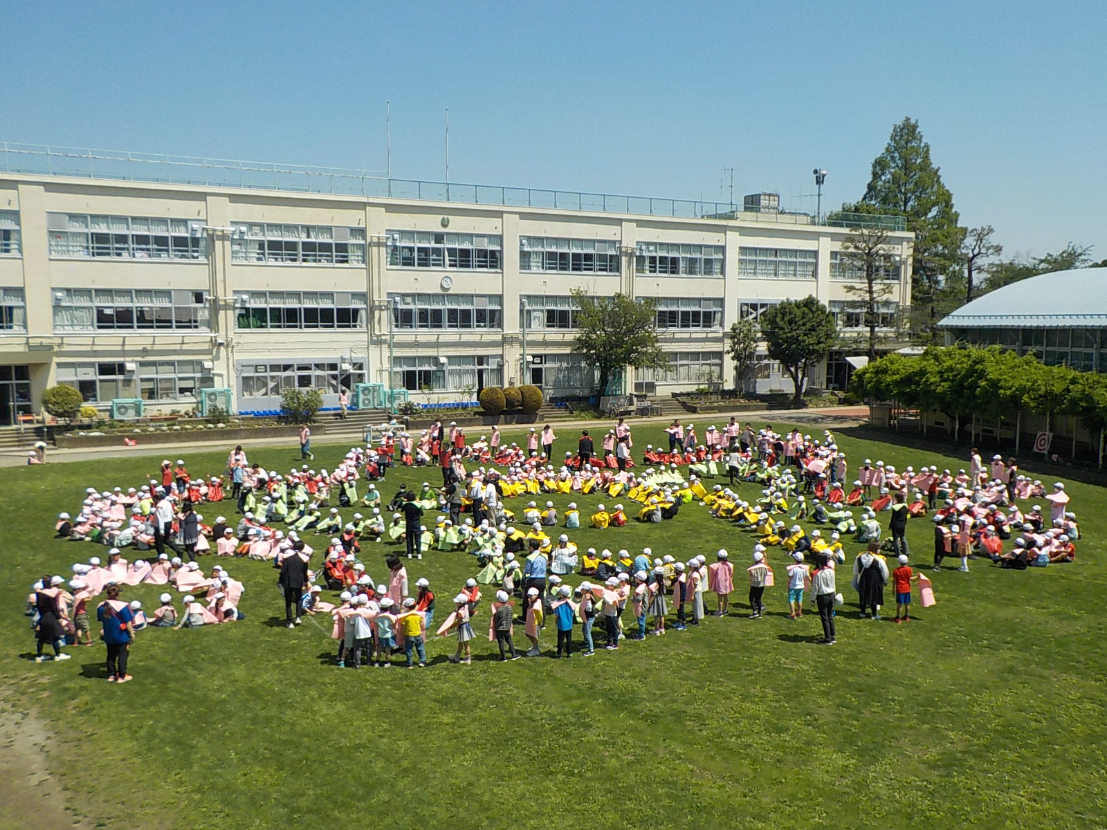 70周年記念の航空写真を撮影しました。スマイリンと桜のデザインを人文字で校庭につくり、雲一つない五月晴れの空のもと、上空からドローンで撮影をしました。最後にはドローンの動画撮影にみんな笑顔で手を振りました。どんな写真ができるか楽しみです。