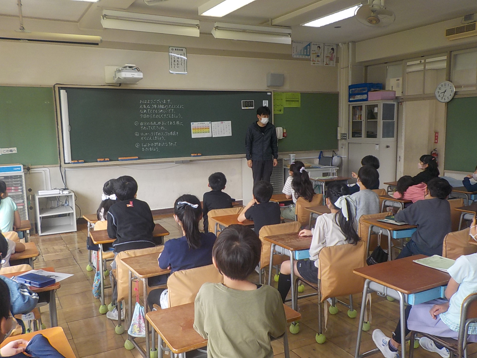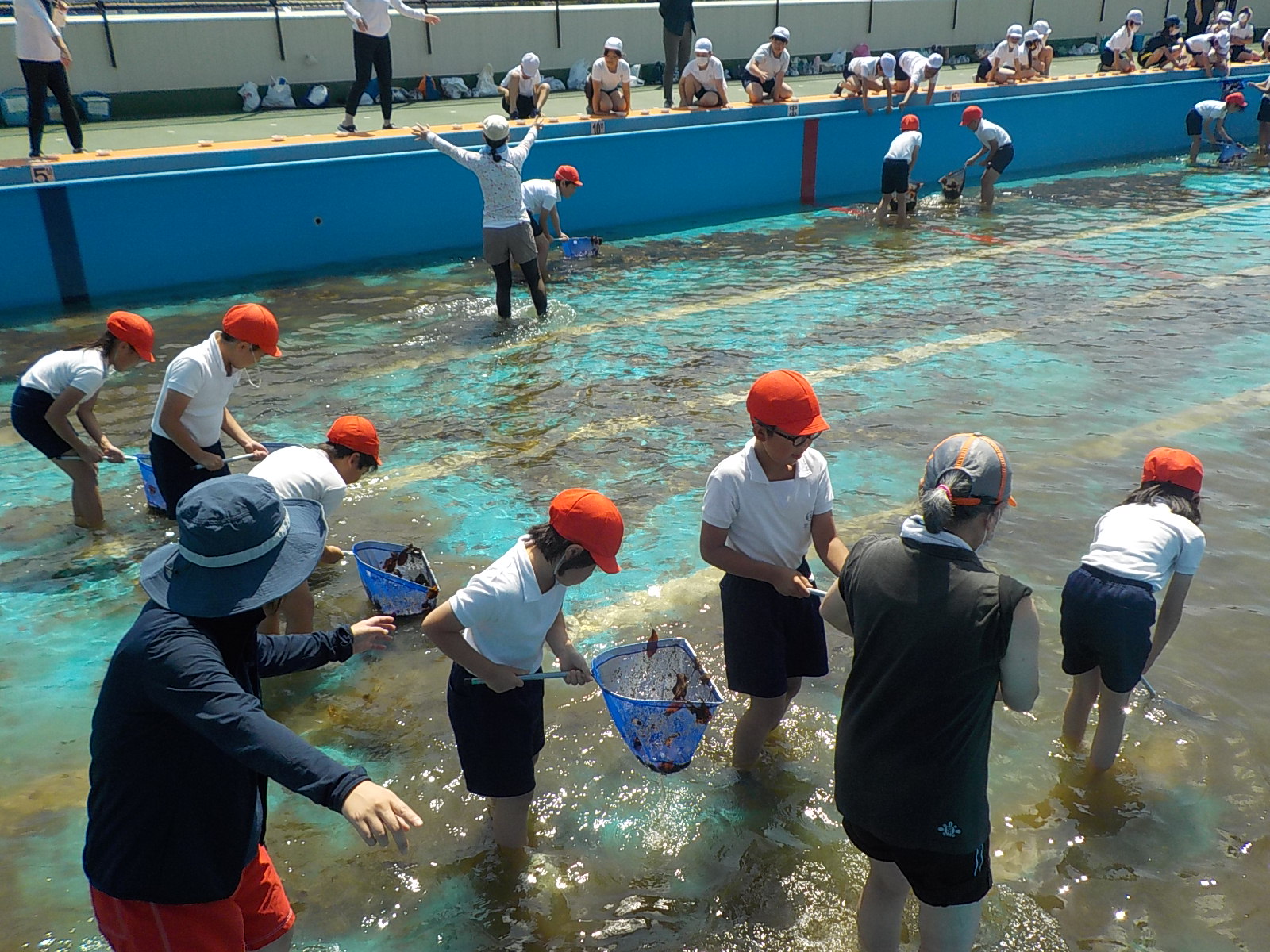 プール開きを前に、プールのヤゴ救出大作戦を実施しました。環境コーディネーターの方のお話を聞き、種類を見分けながらヤゴを救出します。救出したヤゴは3年生がトンボの羽化を楽しみにしながら理科学習で観察を続けています。