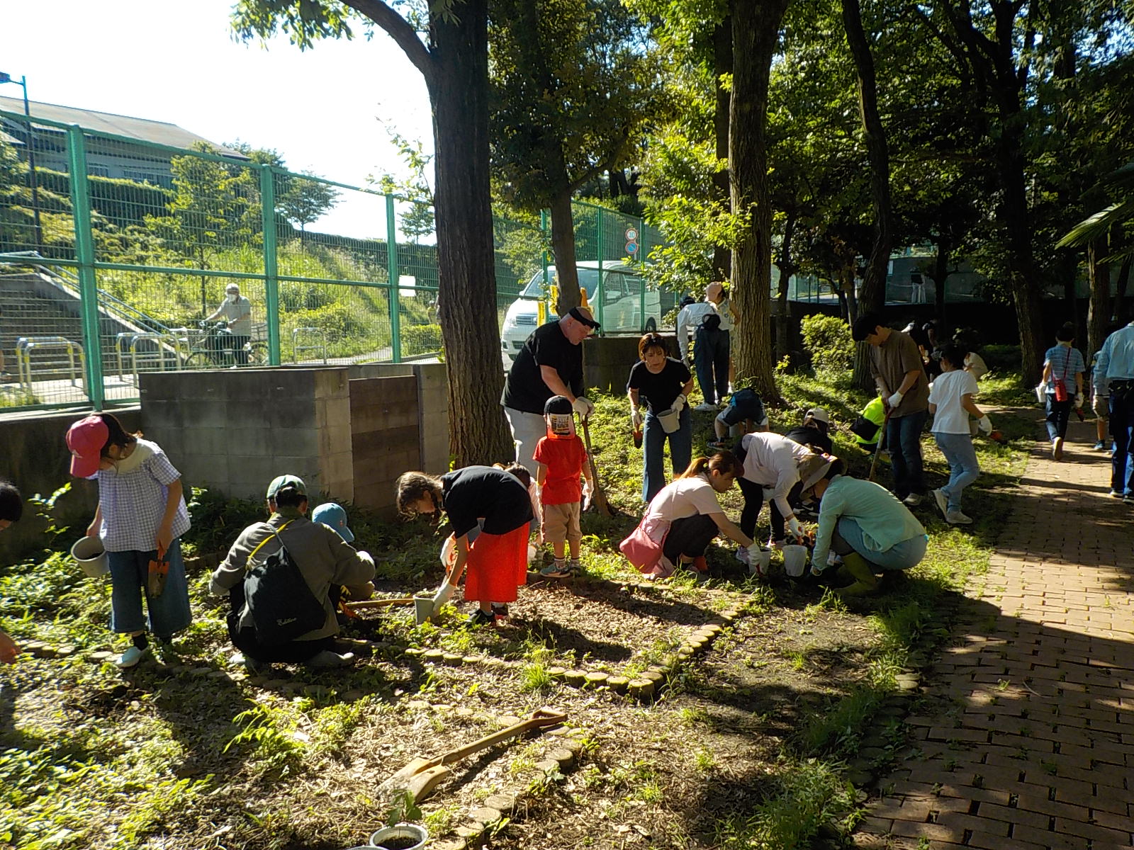 17日に済美の森再生プロジェクトキックオフ会議を開きました。70周年を記念に済美の森を地域保護者の皆様とともにさらに愛着を持てる森にしようとビオトープづくりやドングリの実生の育成に取り組みます。この日は18組の親子の参加があり、ドングリの実生の救出を行いました。