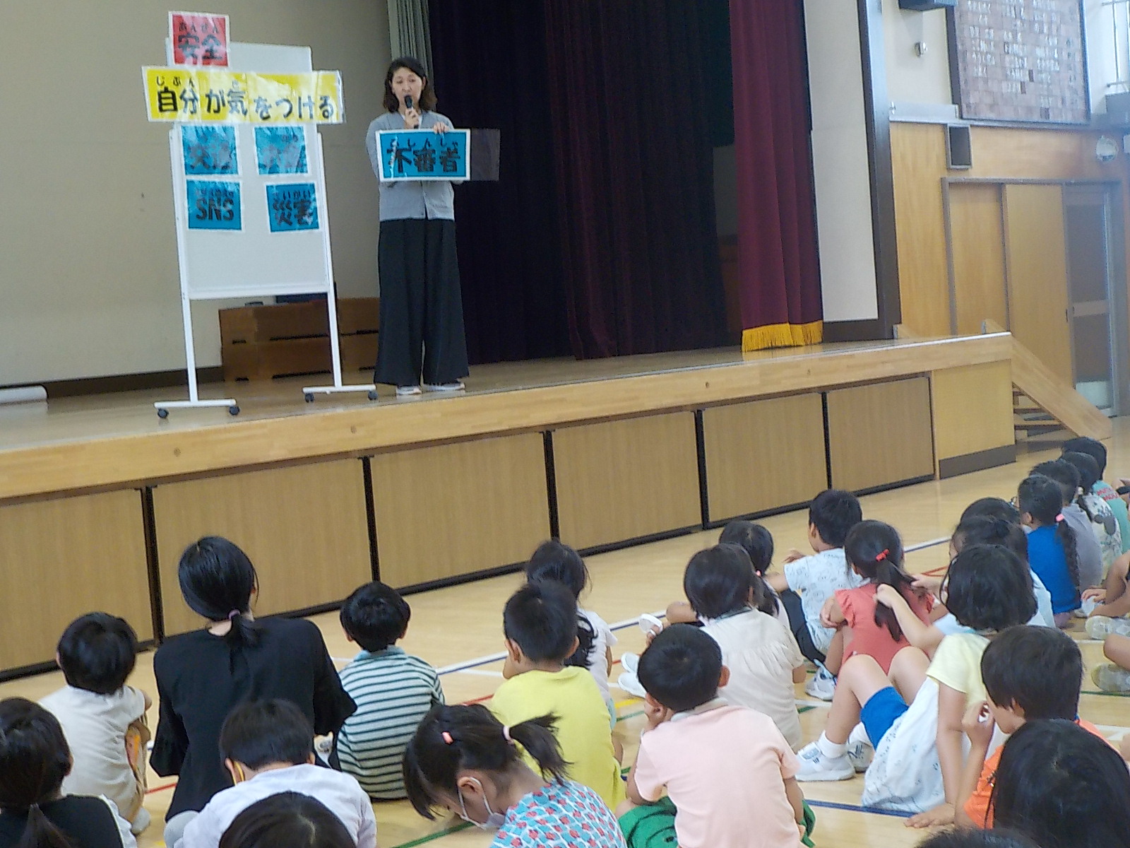 学校公開の中で、各学年セーフティ教室を開催しました。、高井戸警察のスクールサポーターの方に来校いただき、3年生以上は情報通信機器の安全な使い方や危険について学び、1・2年生は生活の中で不審者から身を守る方法を学びました。特に低学年はマジックを見ながら大事なポイントを楽しく学ぶことができました。