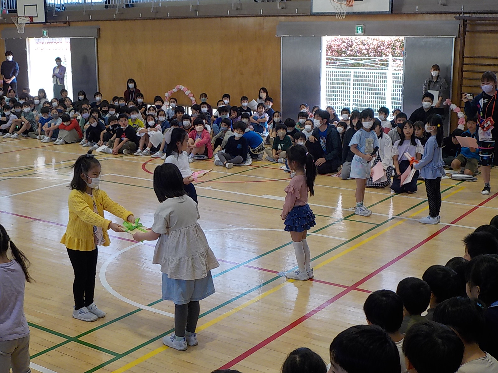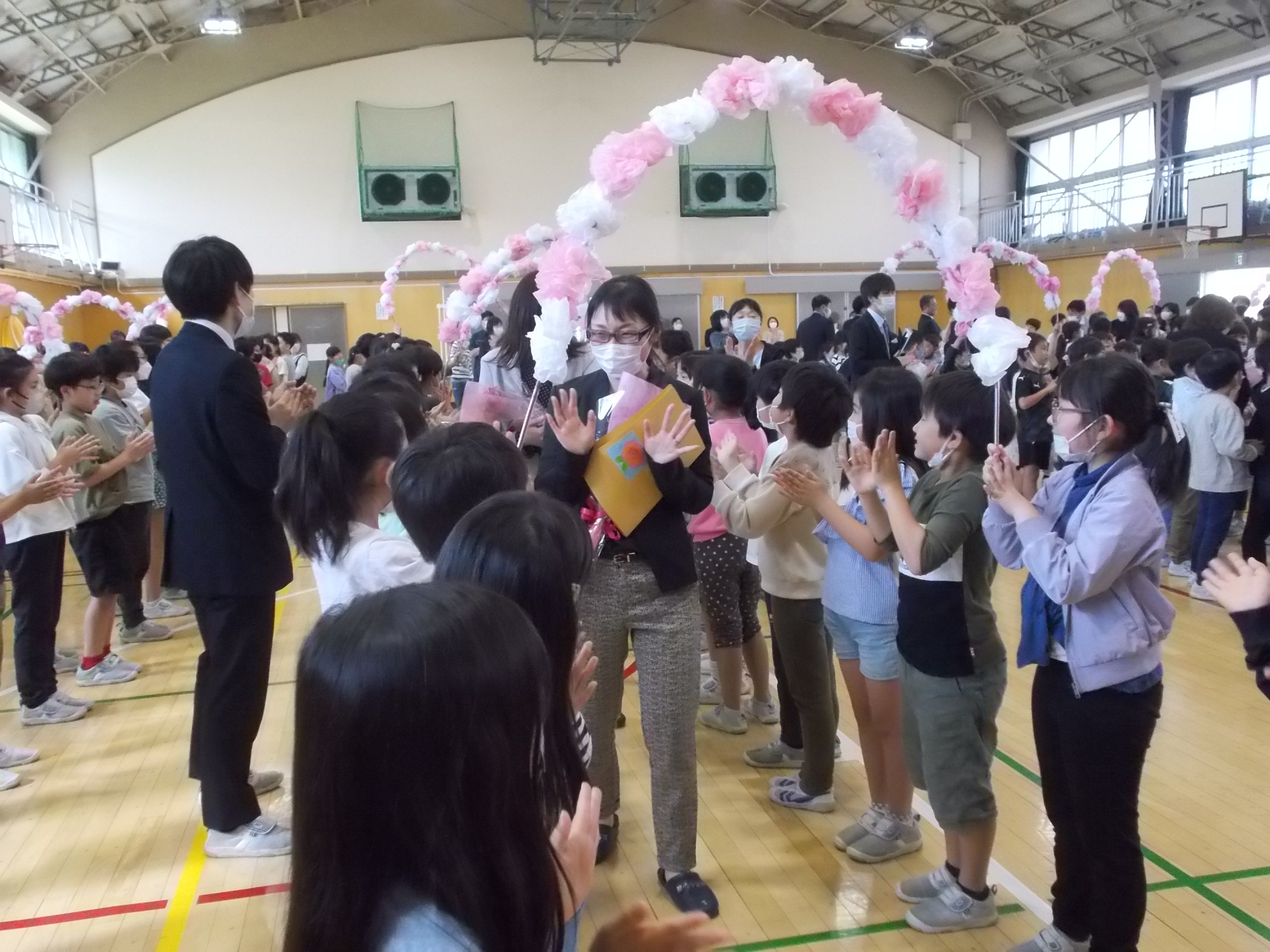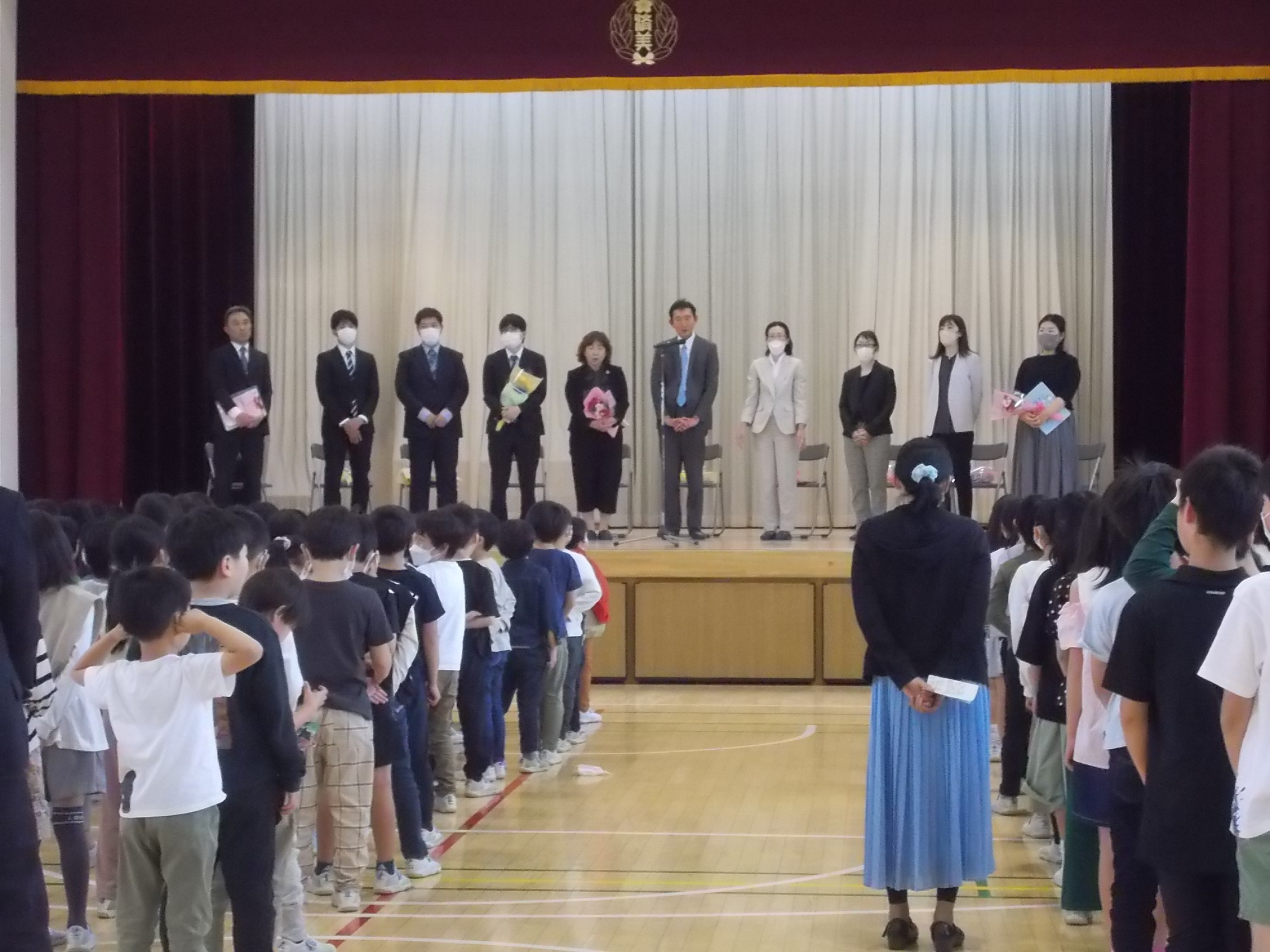 昨年まで済美小学校でお世話になり転出された先生や職員の皆さんとお別れの会を行いました。今年は4年ぶりに2年生以上の児童が全員体育館に集まりお別れができました。各学年の代表児童から心のこもった手紙が読み上げられ、花束が渡されました。最後は校歌を一緒に歌いお別れしました。