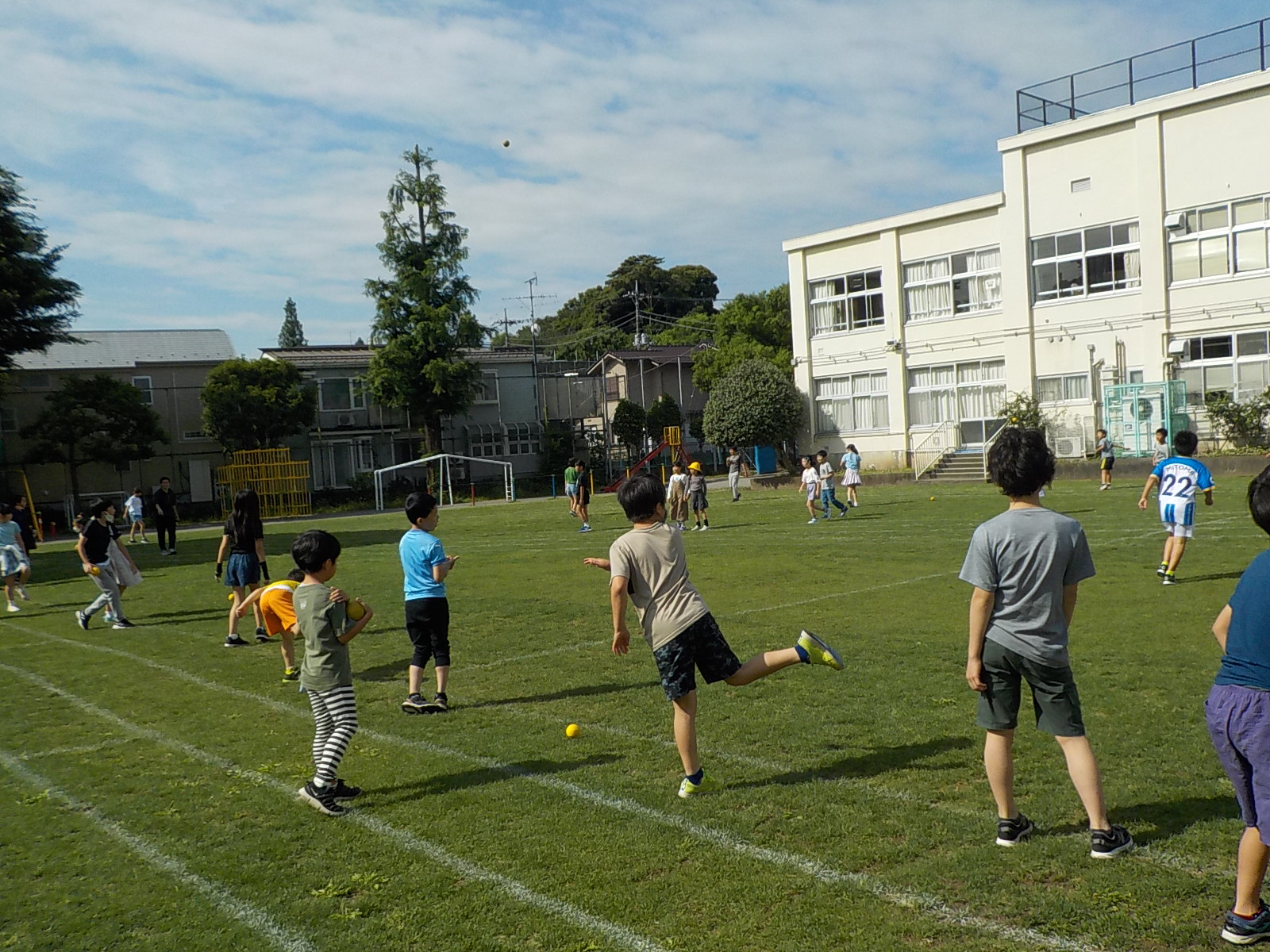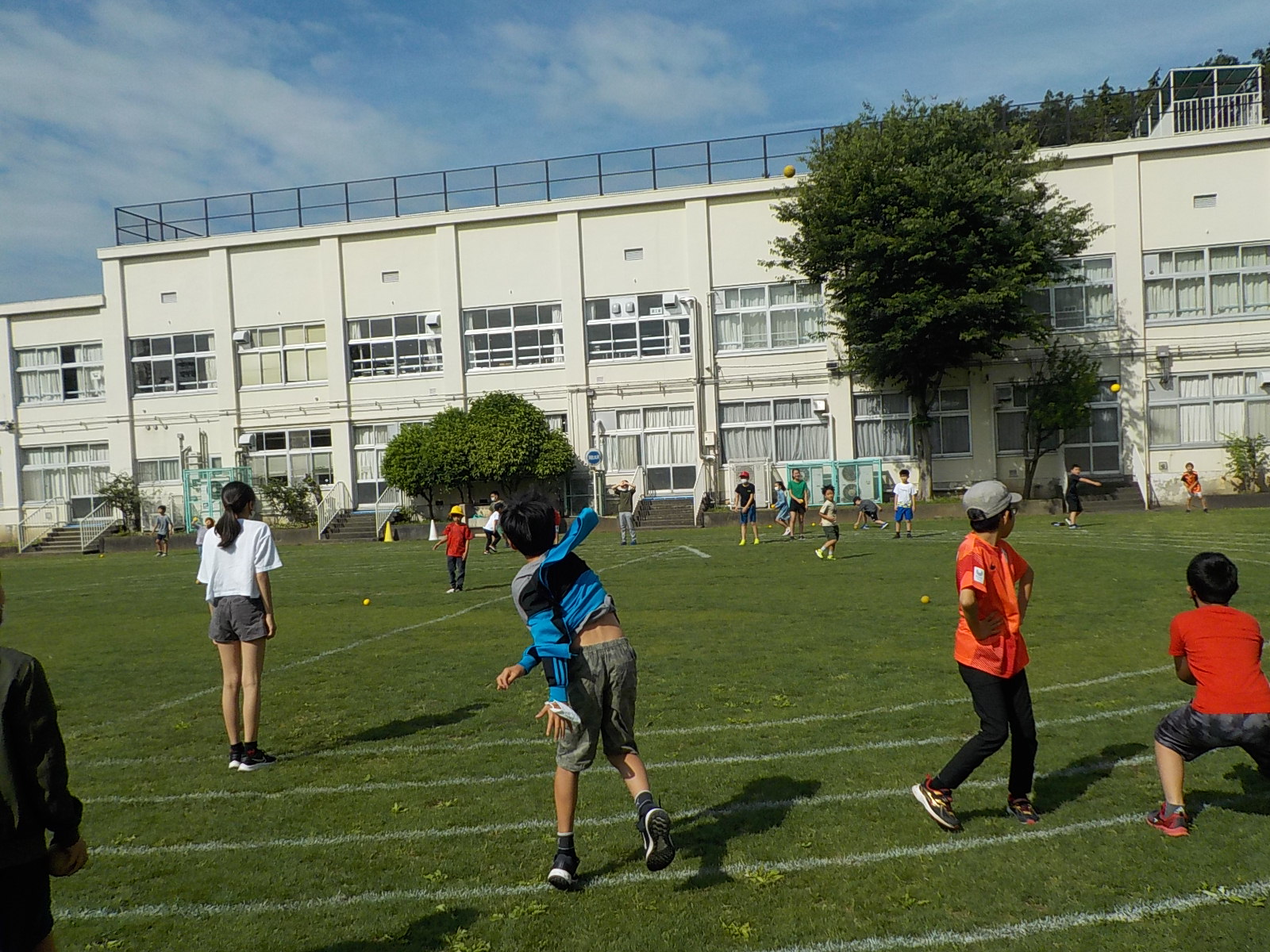 朝の10分間、子供たちが自主的に集まりキャッチボールを楽しんでいます。ボール投げが得意な子も苦手な子もそれぞれが楽しくキャッチボールに取り組んでいます。毎日続けている子は投げ方がスムーズになってきました。
