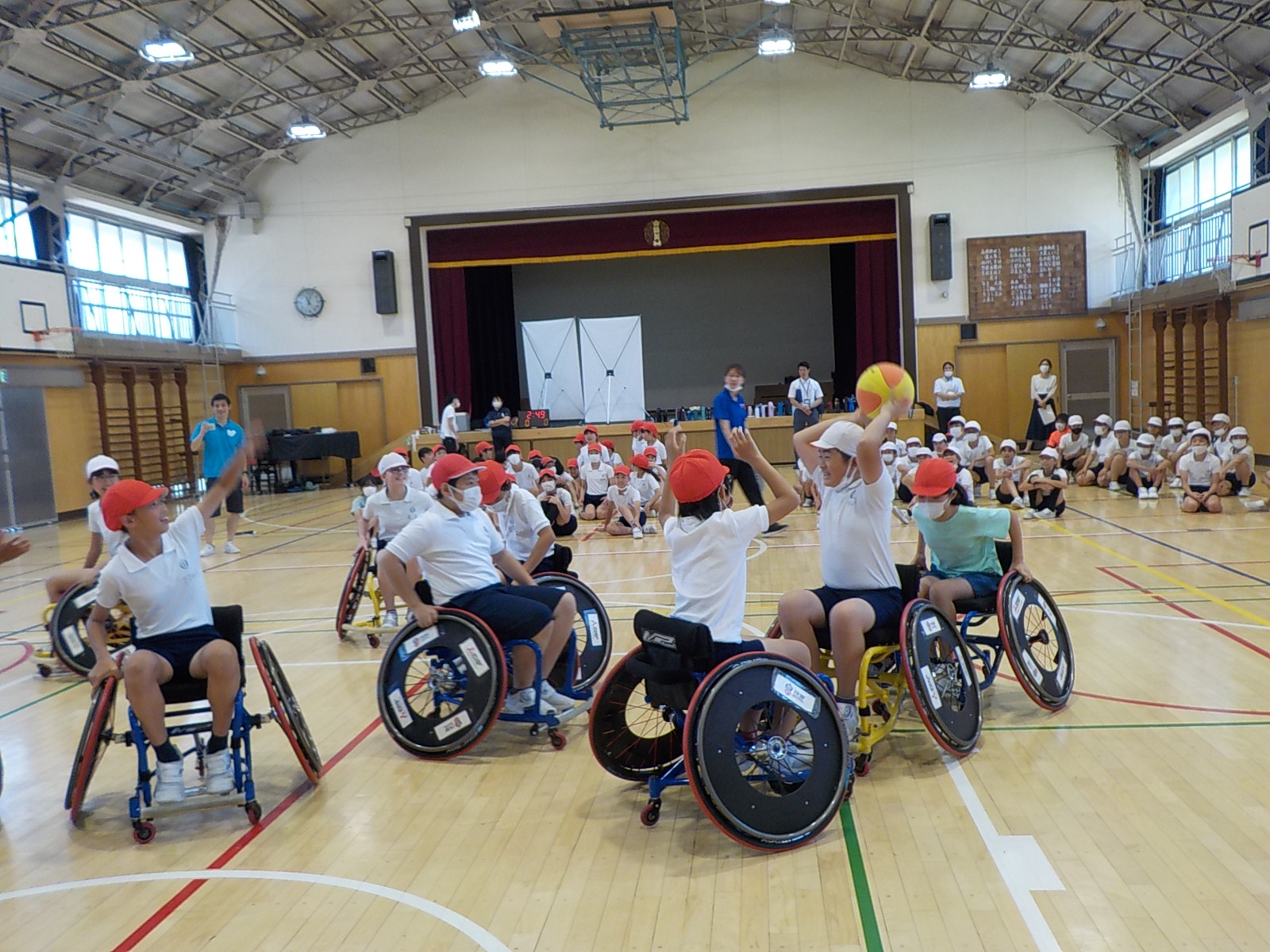 東京都教育委員会の「笑顔と学びのプロジェクト」で車いすバスケ元日本代表の選手が済美小に来校しました。車いすの操作を教えてもらい、車いすバスケットボールを体験し盛り上がった後は、上村選手からジェンダーフリーについての貴重なお話を聞くことができました。