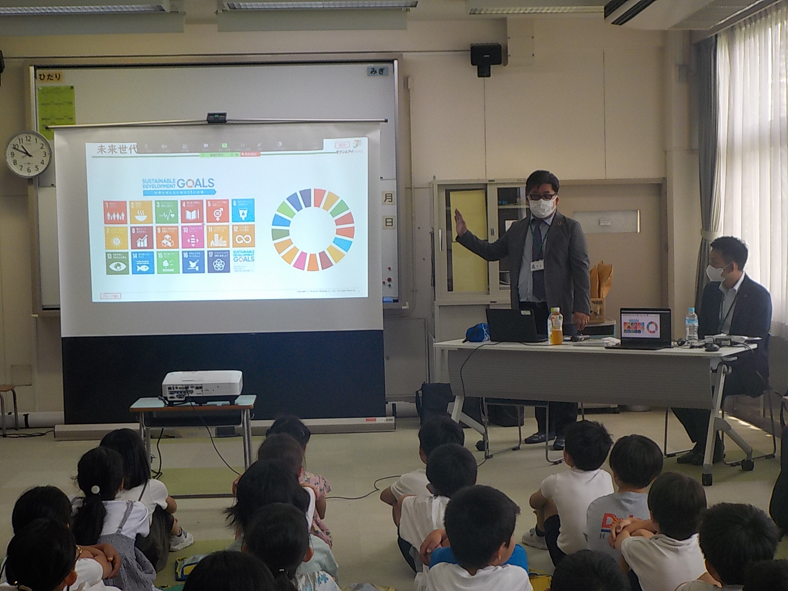 今年も5年生の記号とコラボした、SDGs学習が始まりました。セブンアンドアイホールディングスさんの協力で、1年間かけてSDGs学習をしながら、商品の開発をしていきます。今日は企業の皆さんが商品開発を進める際、どのような想いを込めて取り組んでいるかお話を聞きました。