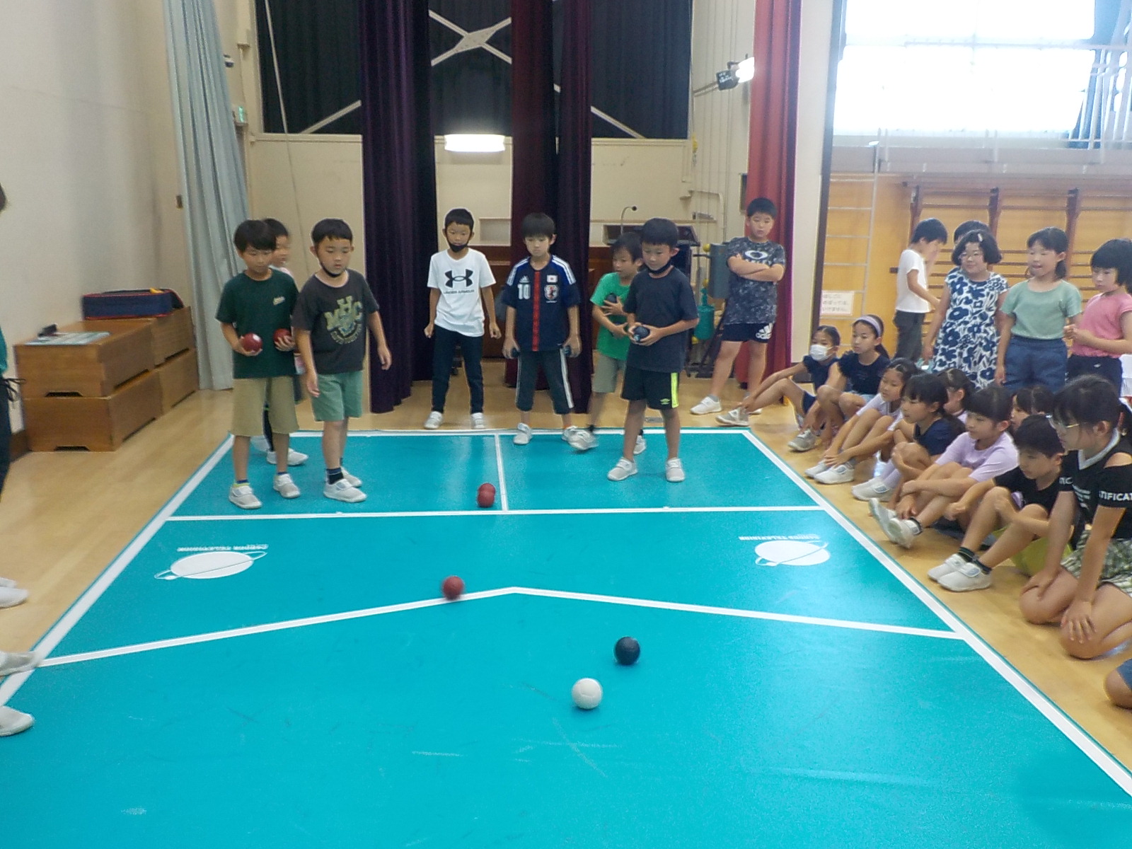6月からスタートした第7回済美小ボッチャ大会が決勝をむかえました。今大会には2・3年が21チーム、4・5・6年生が24チーム参加し、2か月間にわたり熱戦が繰り広げられました。高学年大会は最後の一投まで勝負がわからない接戦となり優勝が決まりました。