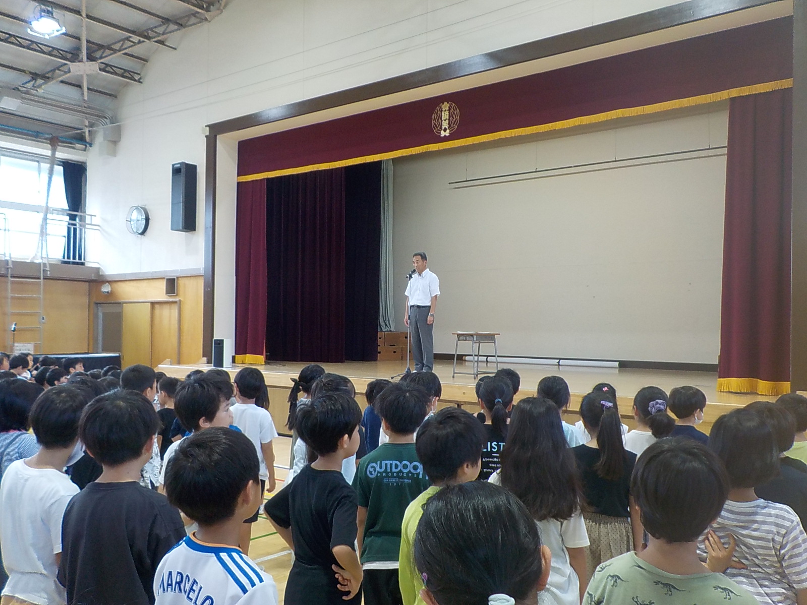 本日をもって1学期が終了しました。1学期は74日間、みんな元気に登校し成長しました。終業式では3年生の代表児童が1学期を振り返り頑張ったことを発表しました。また、夏休みの安全な生活について話を聞きました。明日からは楽しい夏休みです。暑さに気を付けて夏休みしかできない体験をたくさんしてください。