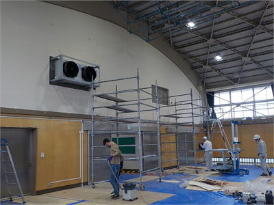 6月25日 体育館空調工事 梅雨のじめじめした日が続きますが、晴れ間の見えた日には、子供たちは元気よく校庭に飛び出し、友達との遊びを満喫しています。今日から、体育館の空調工事が始まりました。完成後は体育館の暑さも少しは和らぐことでしょう。熱中症にも十分気を付けていきます。