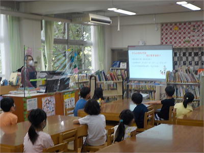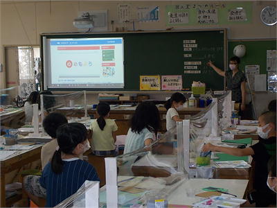 6月17日 専科授業再開 本日から、図工や音楽、図書など特別教室を使う授業が再開されました。図工では児童の机に透明なビニルシートを張り、感染防止を図っています。子供たちは久しぶりの創作活動に集中して取り組んでいました。また、熱中症対策で校庭にテントを張り暑さをしのげるようにしています。