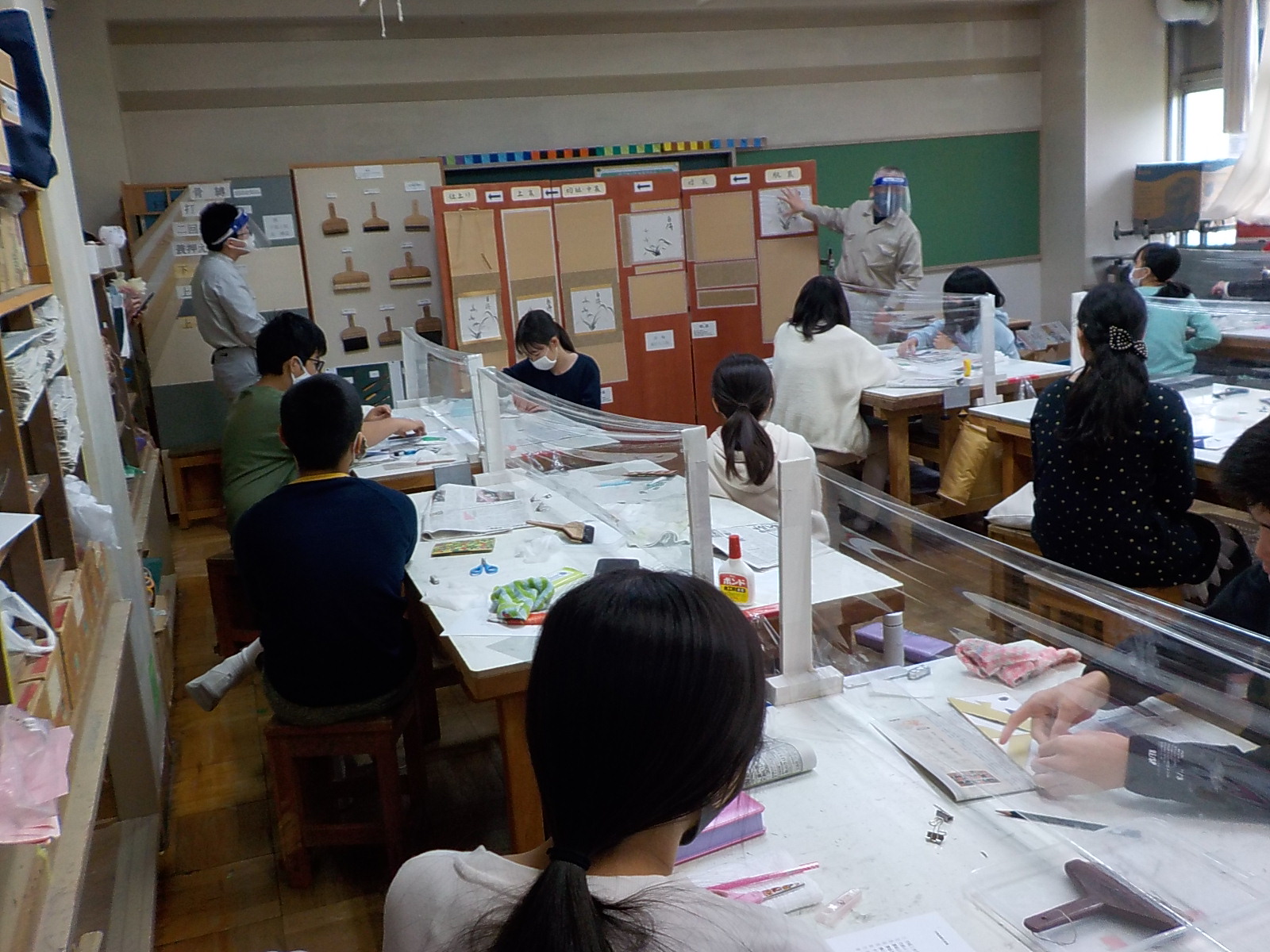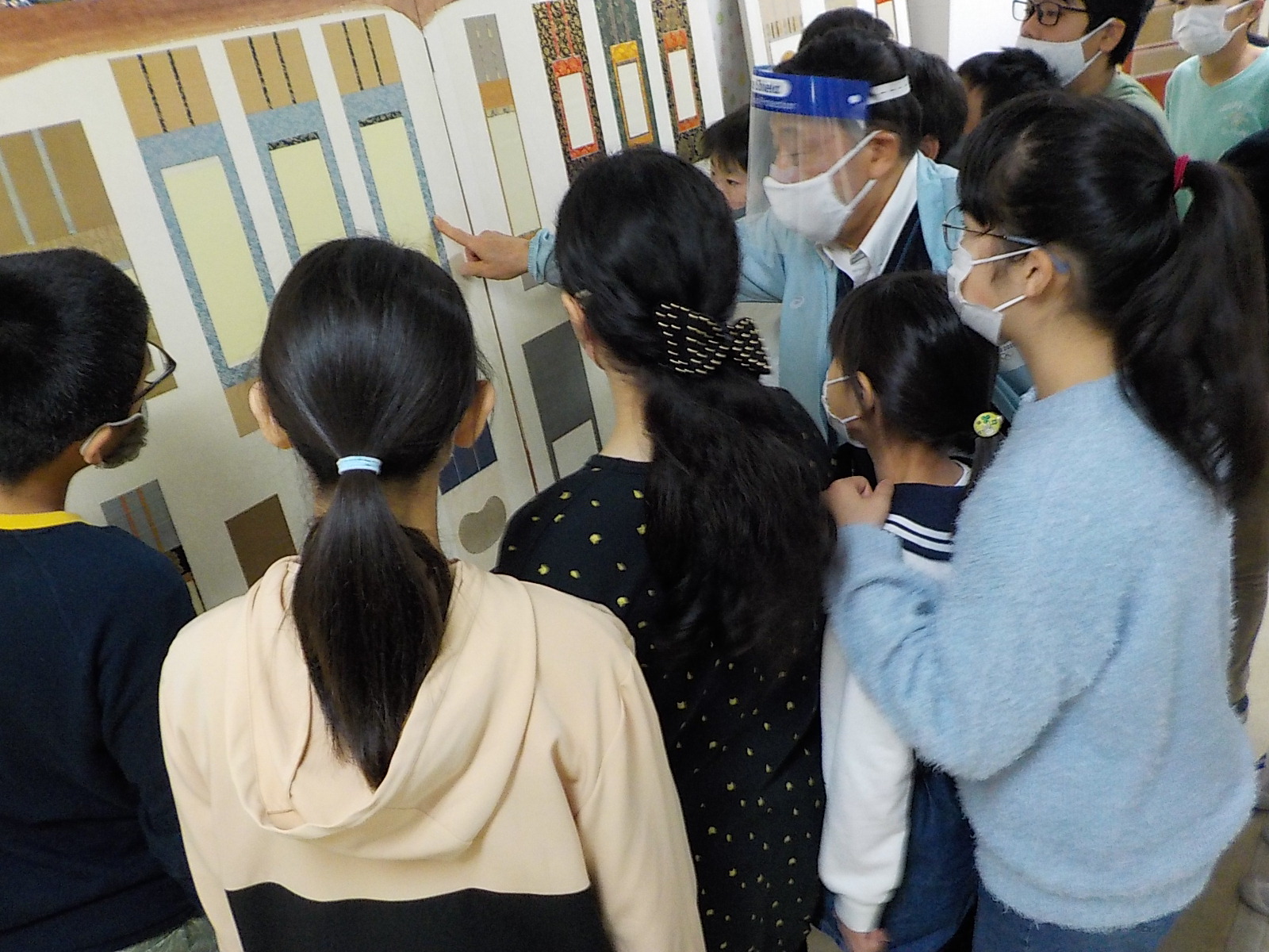 12月5日 日本の伝統文化授業 江戸表具 6年生が江戸時代から伝わる伝統文化「江戸表具」の体験をしました。襖や障子の文化を現在も活躍されている職人さんから直接教えていただき、みんな真剣な表情で、からくり屏風づくりに取り組みました。