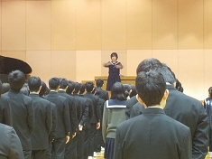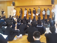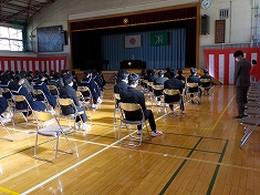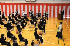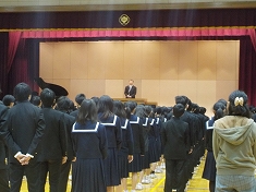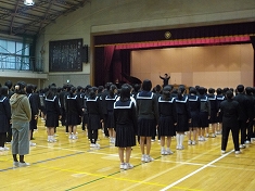 3学期始業式・肌寒い中3学期が始まりました。元気な校歌が響いていました。