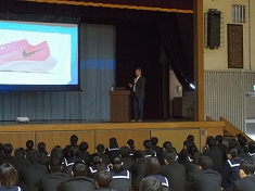 内科・外科担当の山川クリニックの山川雅之先生から校医講話を頂きました。先生は東京オリンピック2020の担当医です。今話題のスポーツシューズの話やドーピングの話をしていてだきました。