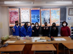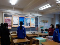 2年生修学旅行の事前学習で新聞を作成しました。完成した新聞をお互いに見合いました。