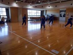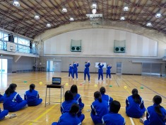 1年生体育科の授業の様子。ダンスに取り組んでいました。緊張しながらも一生懸命踊っています。