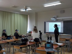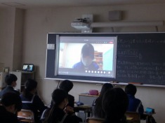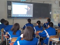 2年生キャリア教育の様子。学校評議委員の方をお招きしました。リモート形式も使用しながら、職業について話していただきました。