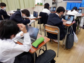 【生徒朝礼・認証式】リモートによる生徒朝礼および各教室で認証式を行いました。